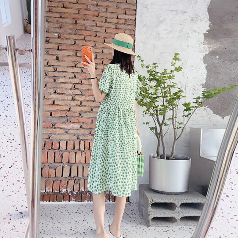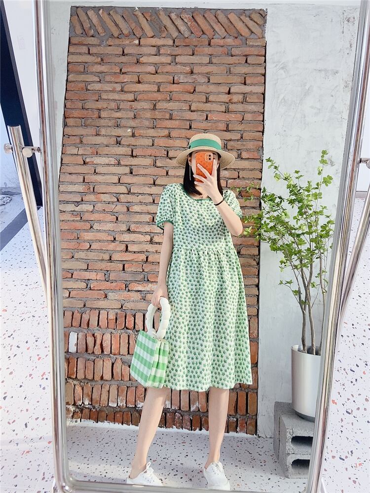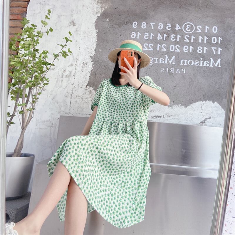 サマーラウンドネックFlowerデザイン スカート 大きめサイズ 大人ガーリー スウィート キュート カジュアル 夏物 Oネック フラワーデザイン ミックスインファッション10637823561