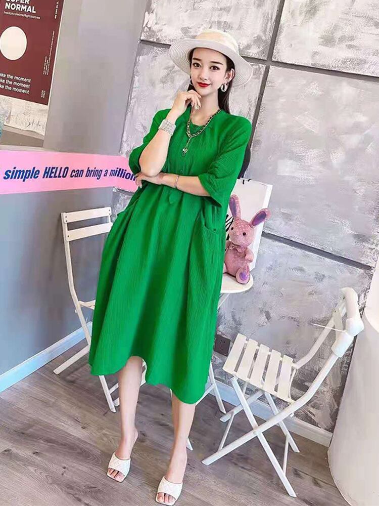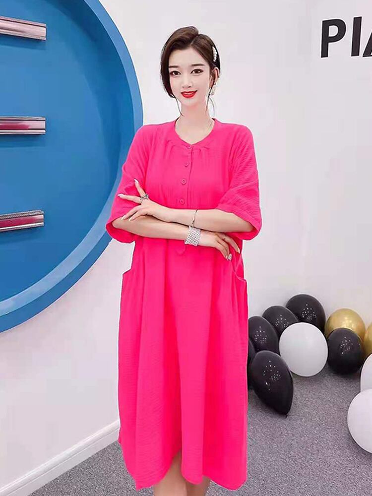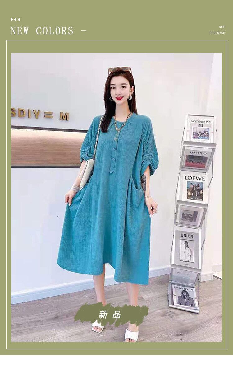 サマールーズラウンドネックギャザーポケット 大きめサイズ 夏物 Oネック ミックスインファッション62748760431