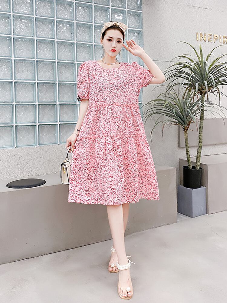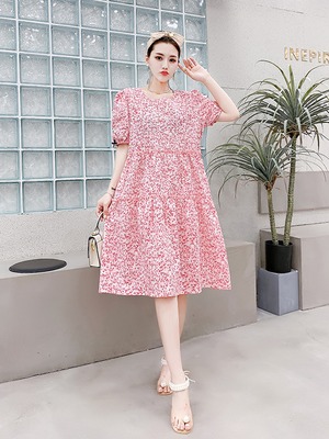 サマースリーブルーズ薄手フローラルドレス リボン 大きめサイズ 大人ガーリー スウィート キュート カジュアル 夏物 花柄 ピュア ミックスインファッション45531595786