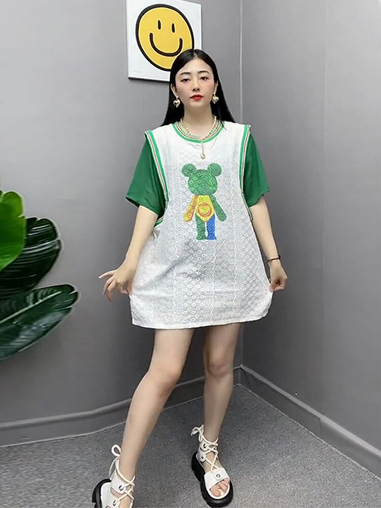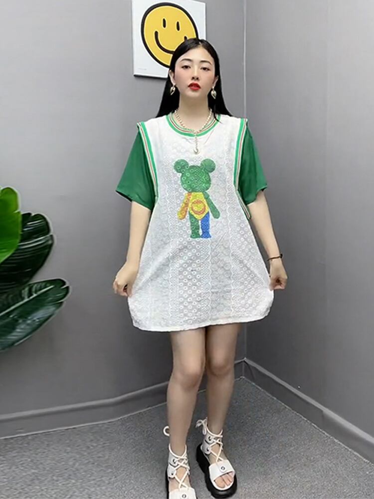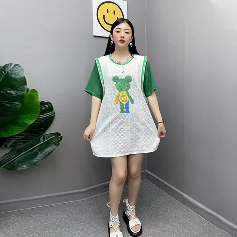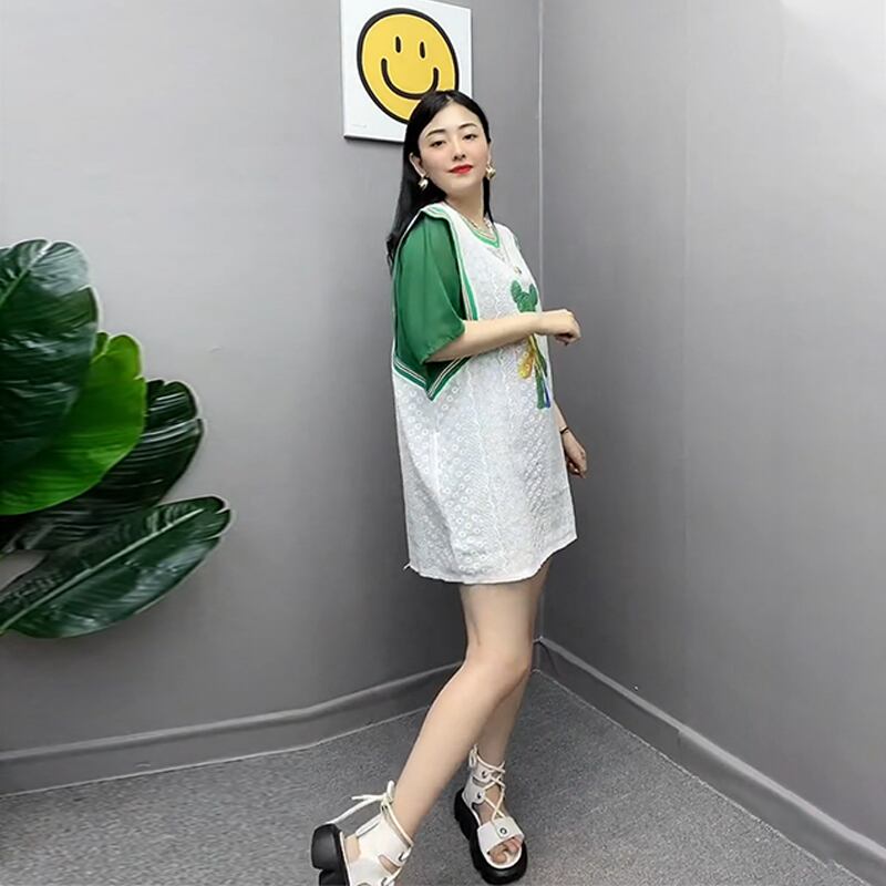 ドレス サマーカラールーズスカート ハイウェストウェスト薄手 大きめサイズ 夏物 ミックスインファッション24194800115