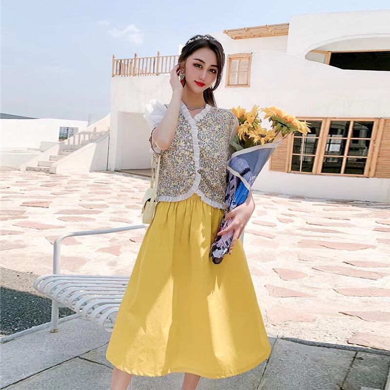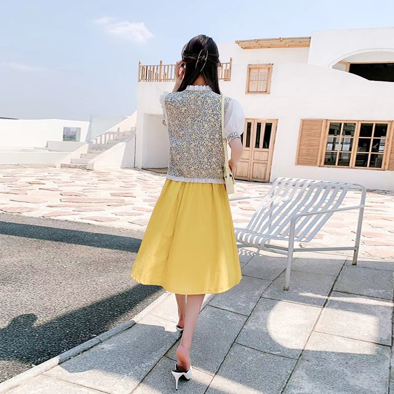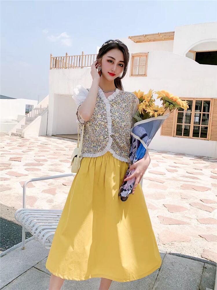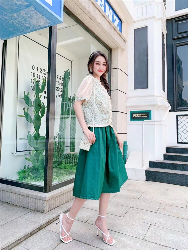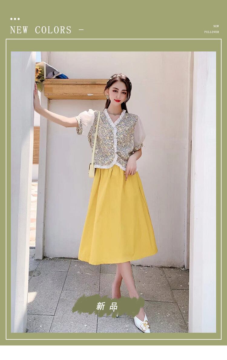 サマーフローラルスリーブトップス Aラインスカート 大きめサイズ 大人ガーリー スウィート キュート カジュアル 夏物 花柄 ミックスインファッション20396918744