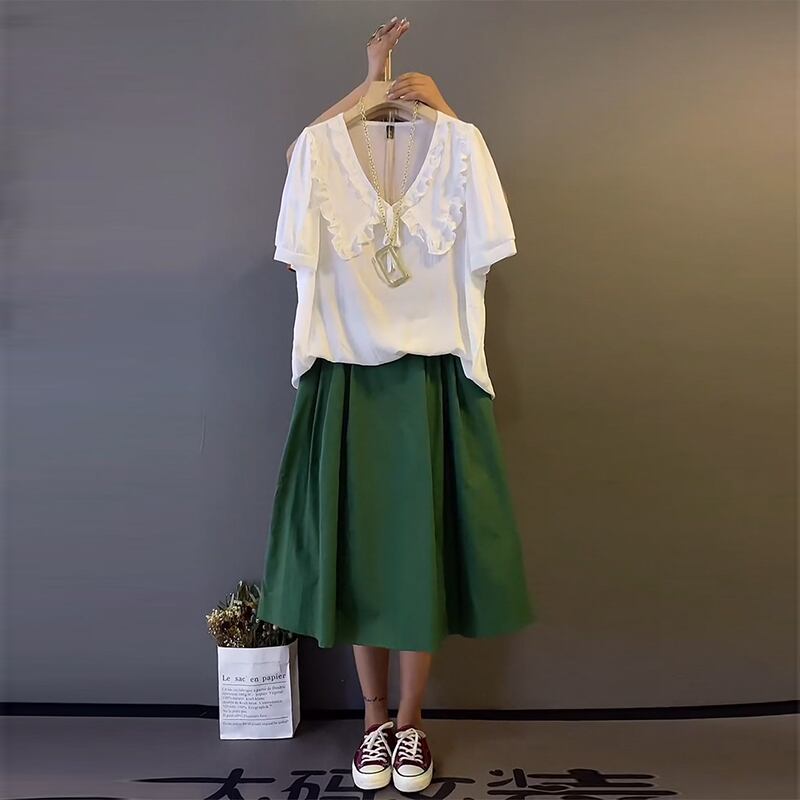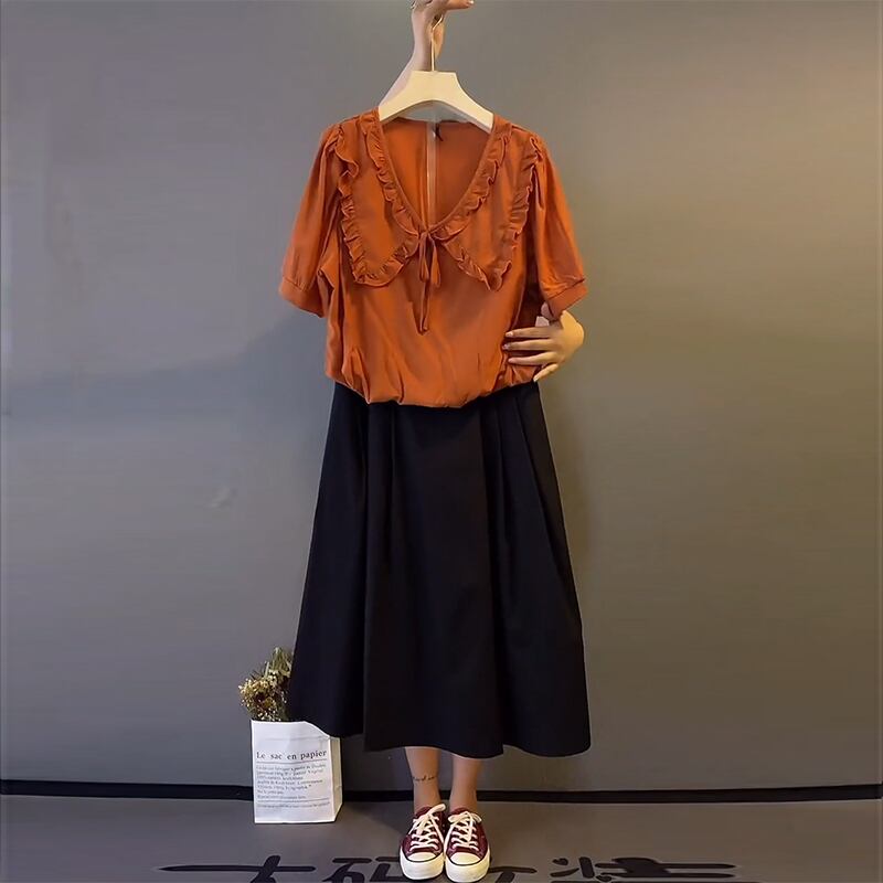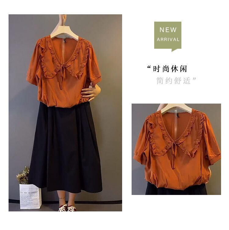 サマードレス カラーTシャツ ルーズブラウス スカート 大きめサイズ 夏物 ミックスインファッション84213852016