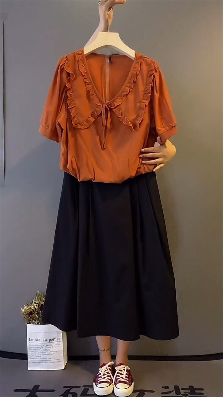 色:ホワイトトップ,オレンジトップ,緑のスカート,黒スカート