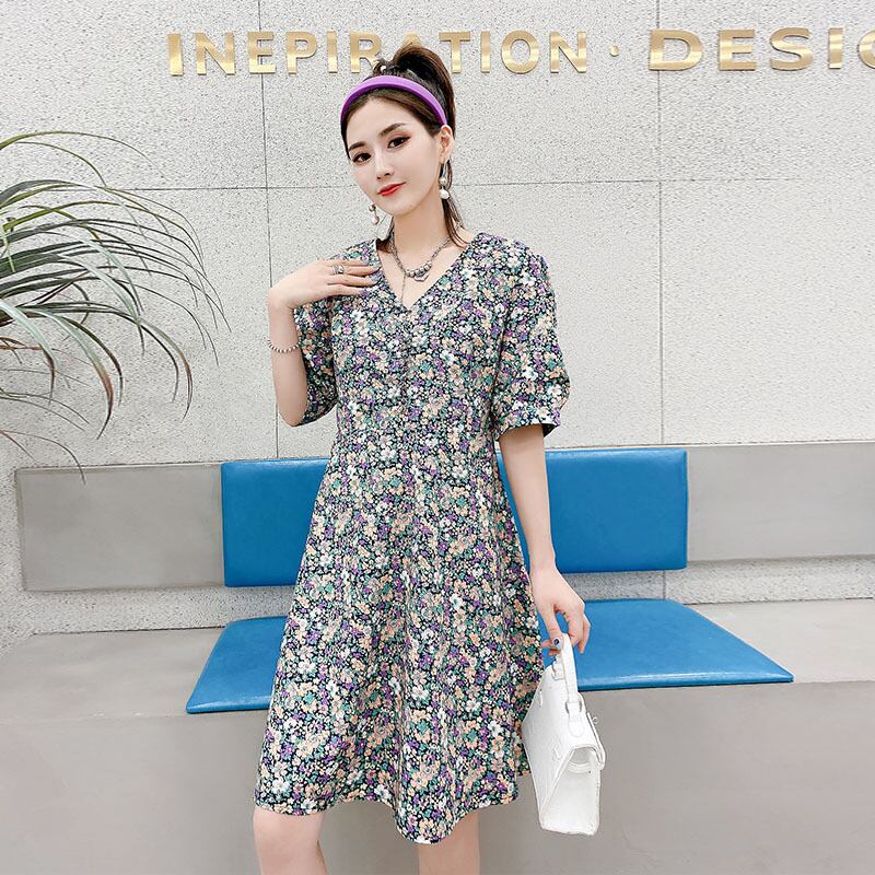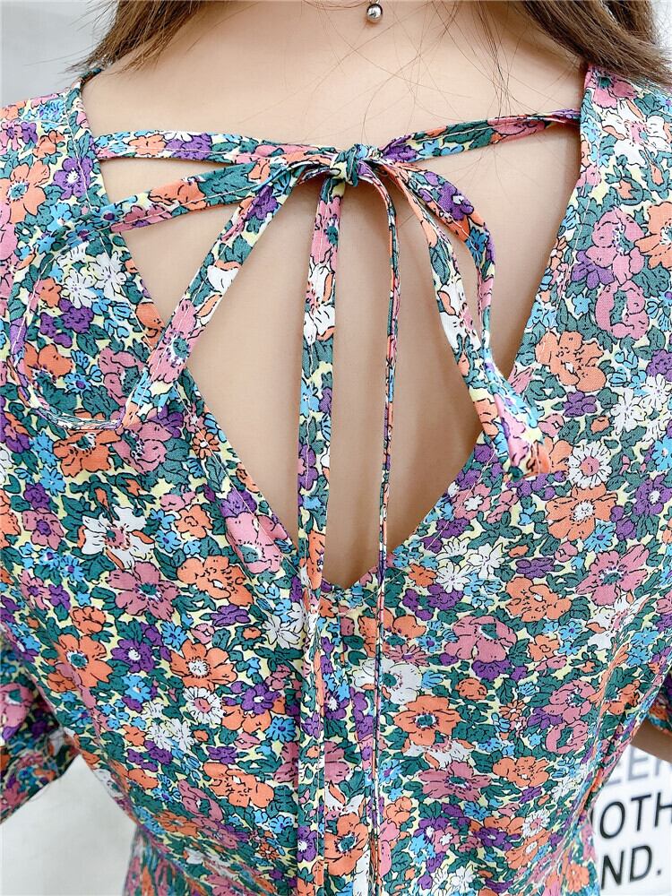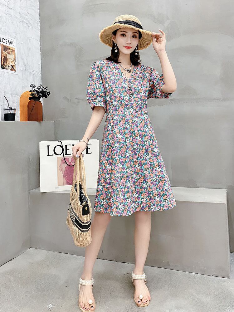 サマーVネックフローラルバックレースウェストドレス 大きめサイズ 大人ガーリー スウィート キュート カジュアル 夏物 花柄 ミックスインファッション66998605035