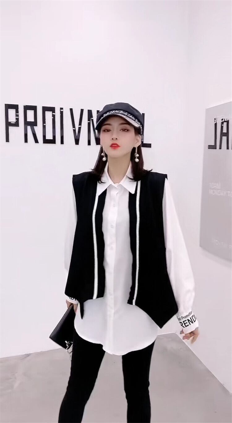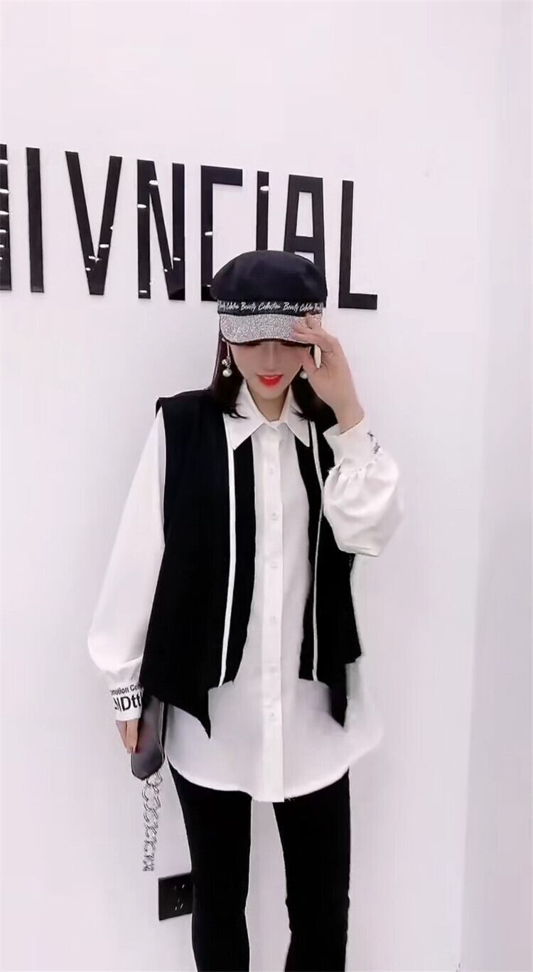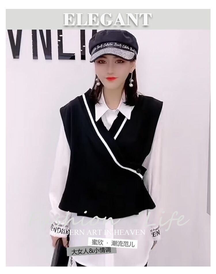 スプリングスタイルホワイトストライプサイドカフシャツ 大きめサイズ 春物 ミックスインファッション65403319059