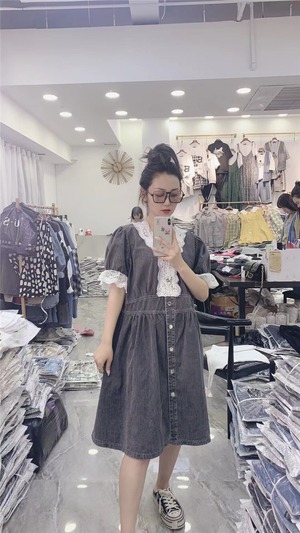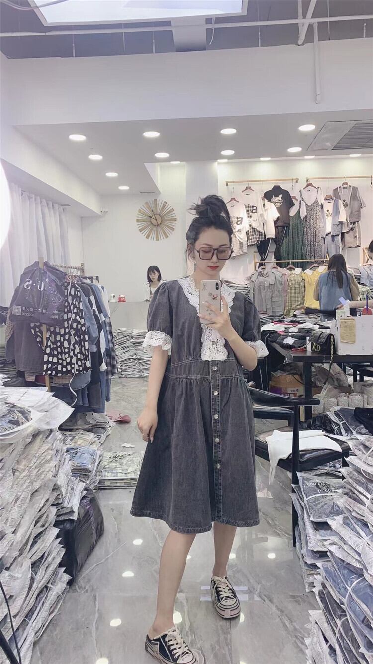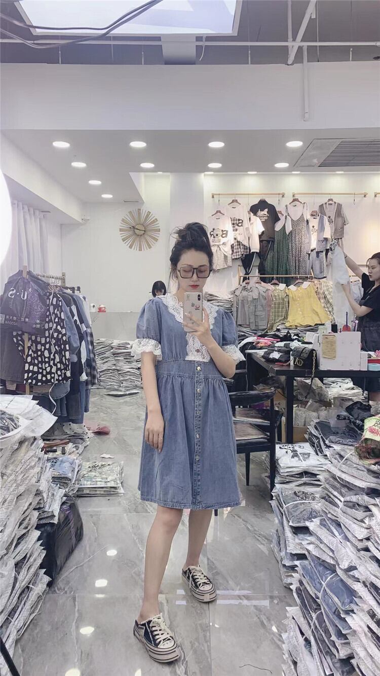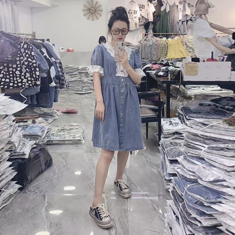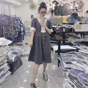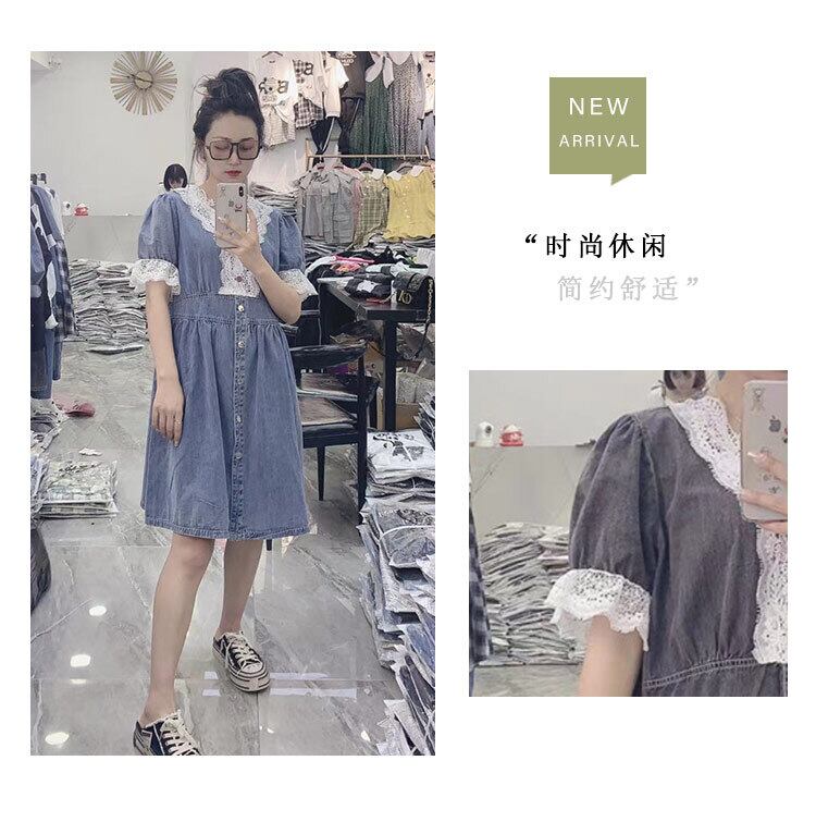 レースVネックスタンダードウェストドレス サマースタイル レトロ 大きめサイズ 夏物 ステッチ ミックスインファッション99899295749