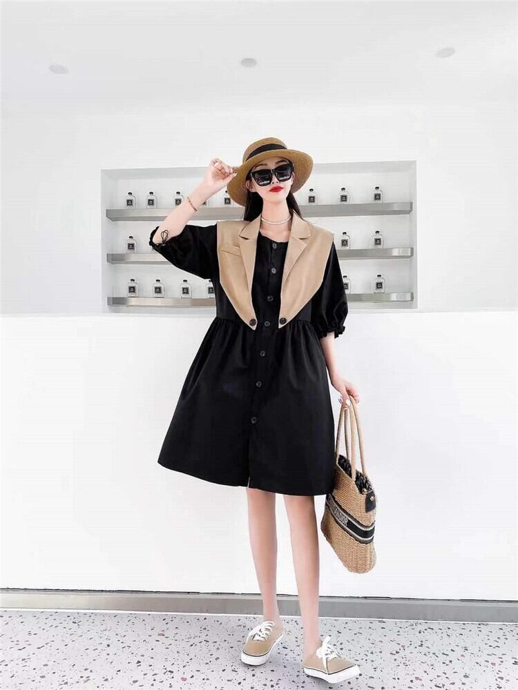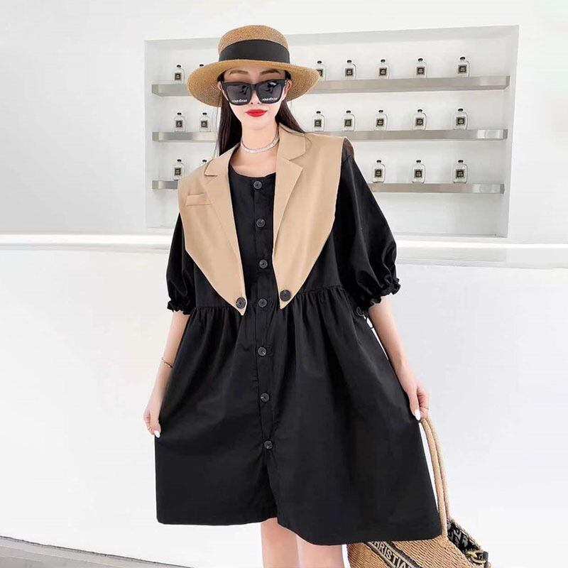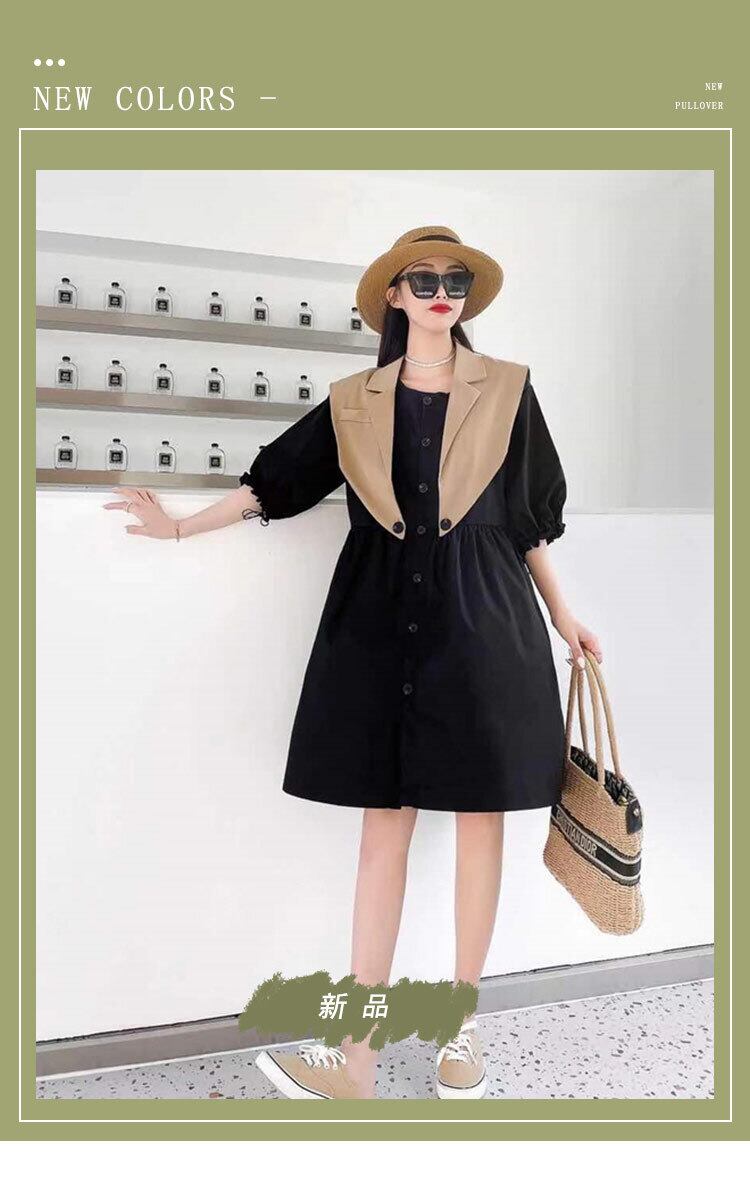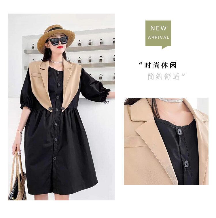 サマーウェストボタンドレス スカート 大きめサイズ 夏物 ミックスインファッション46226198099