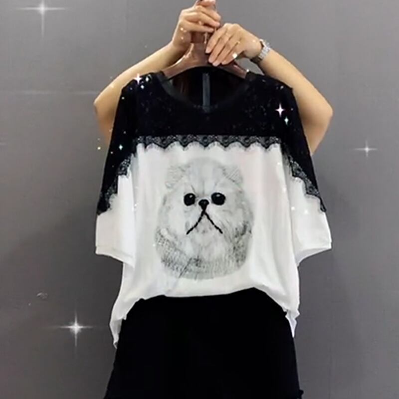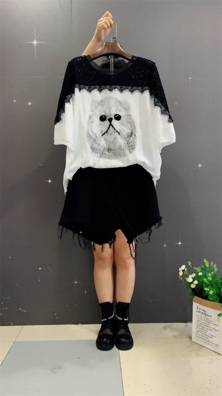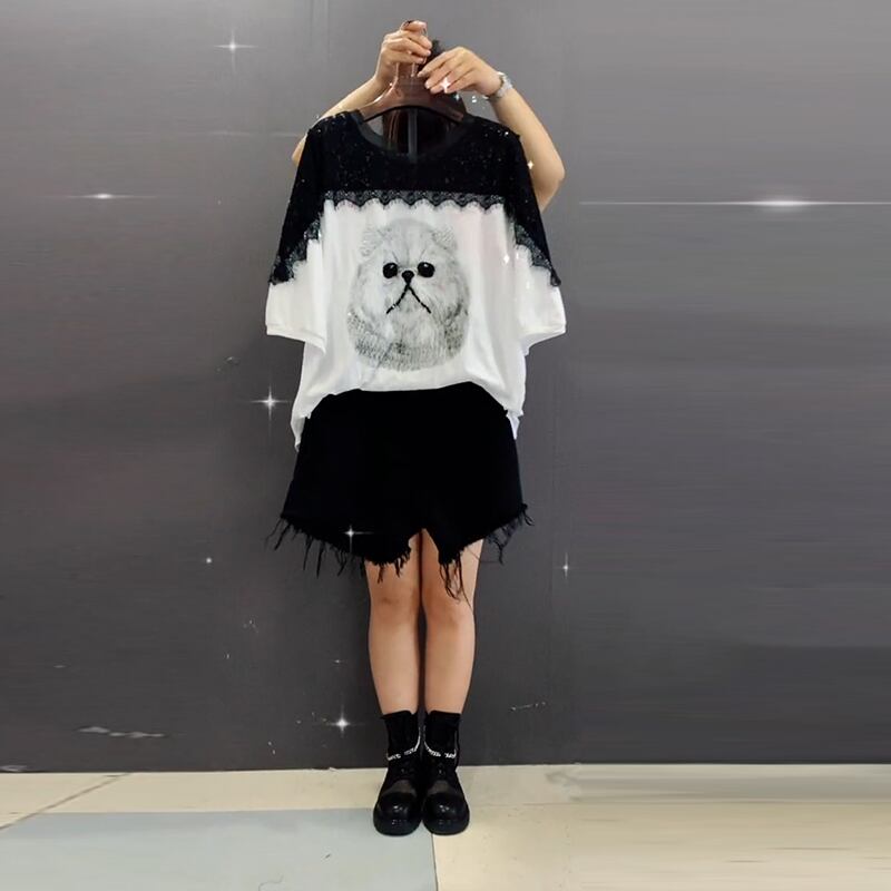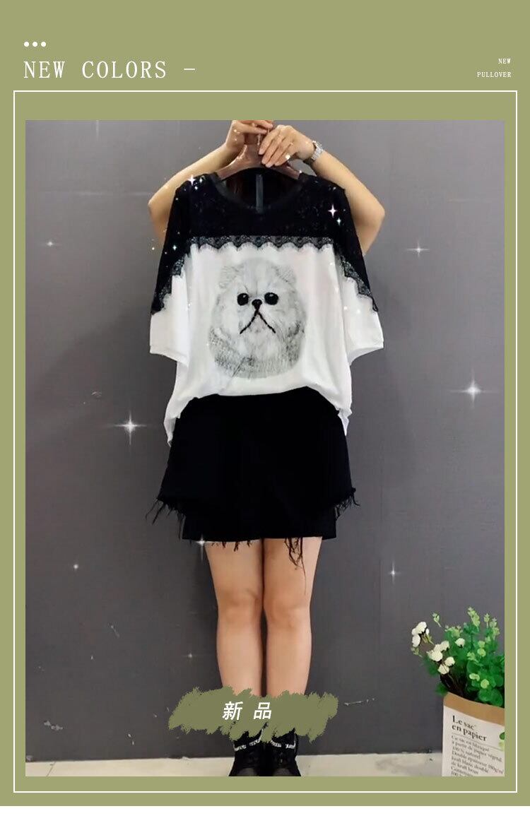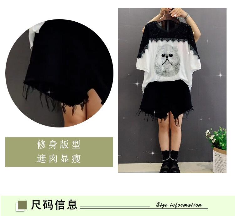 レースショートトップス レディースサマーTシャツ ショーツ 大きめサイズ 夏物 ブルマー ステッチ ミックスインファッション79842949108