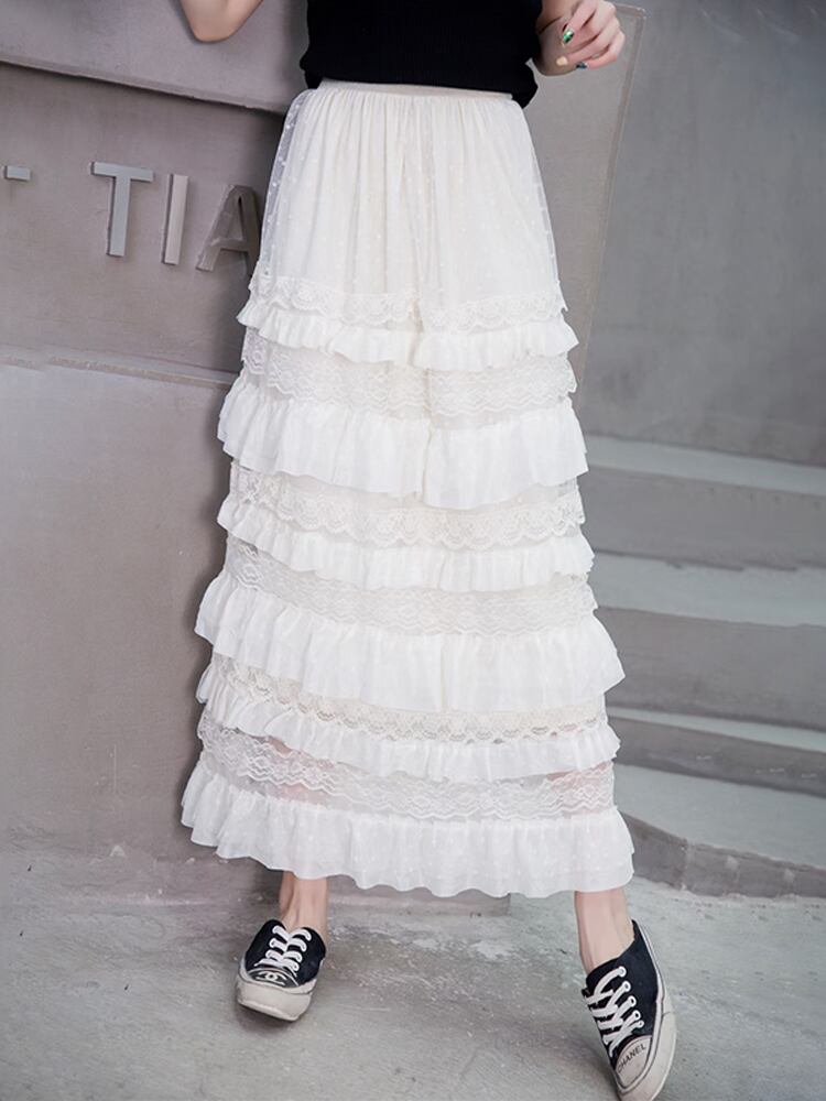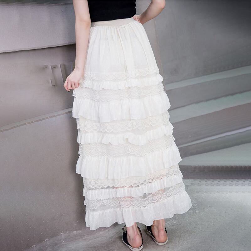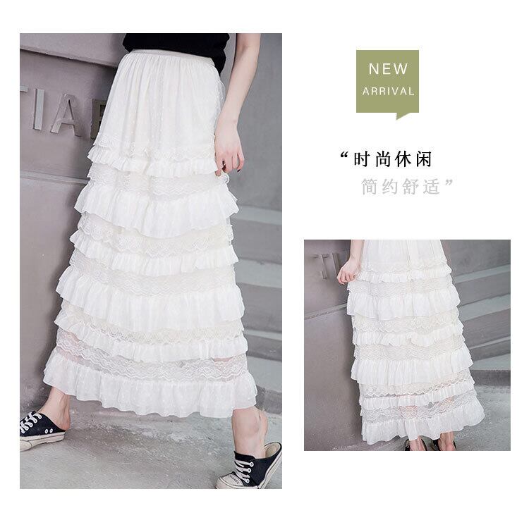 サマープリーツスカート ロングハイウェストウェストAラインレースメッシュ 大きめサイズ 夏物 ステッチ ミックスインファッション28902262257