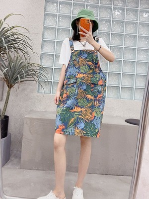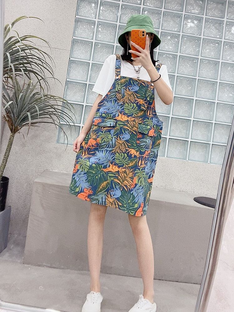 サマーカジュアルラウンドネックTシャツ フローラルドレス 大きめサイズ 夏物 花柄 Oネック ミックスインファッション37499275106