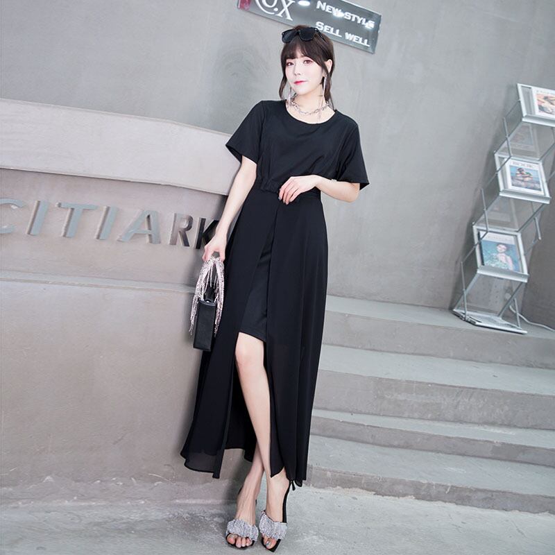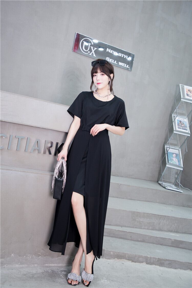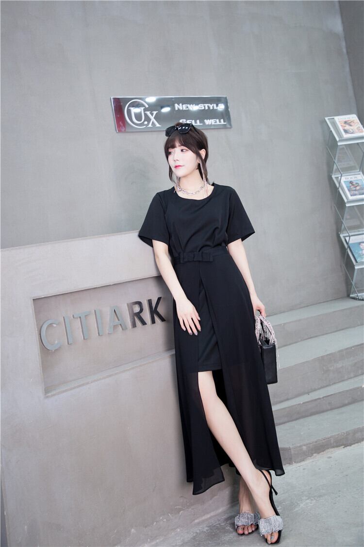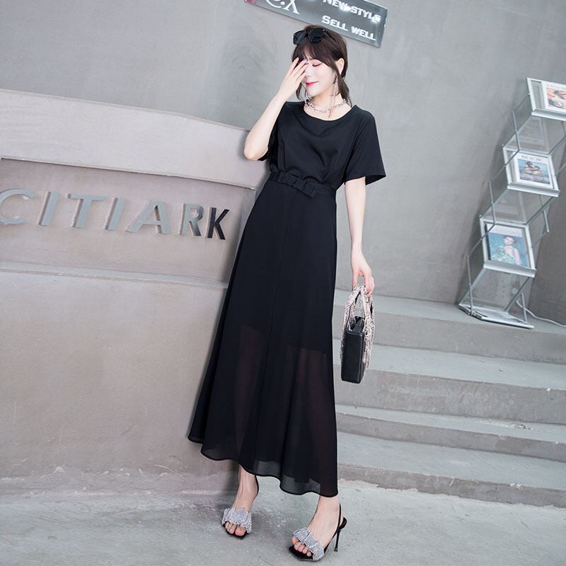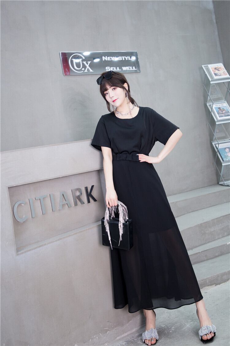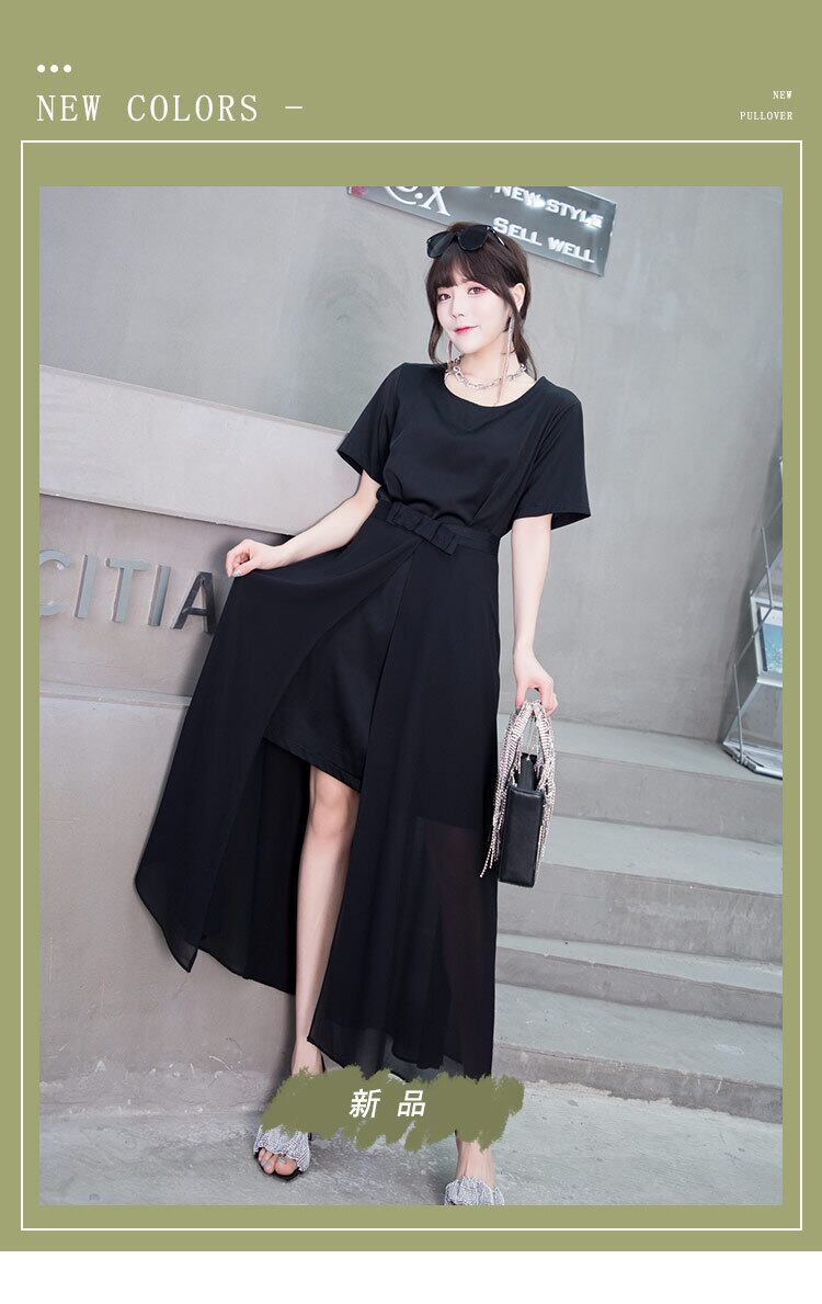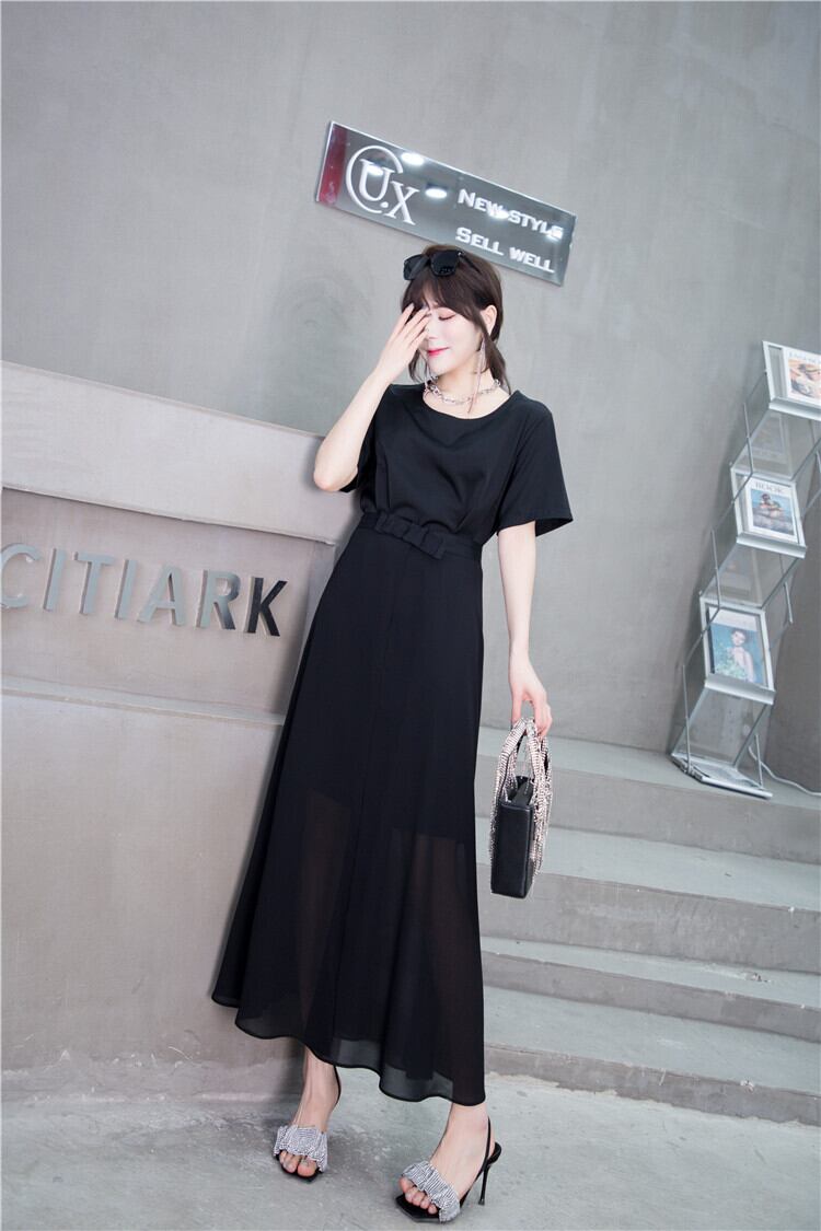 サマーTシャツ メッシュスカート ドレス 大きめサイズ 夏物 ミックスインファッション97532343912
