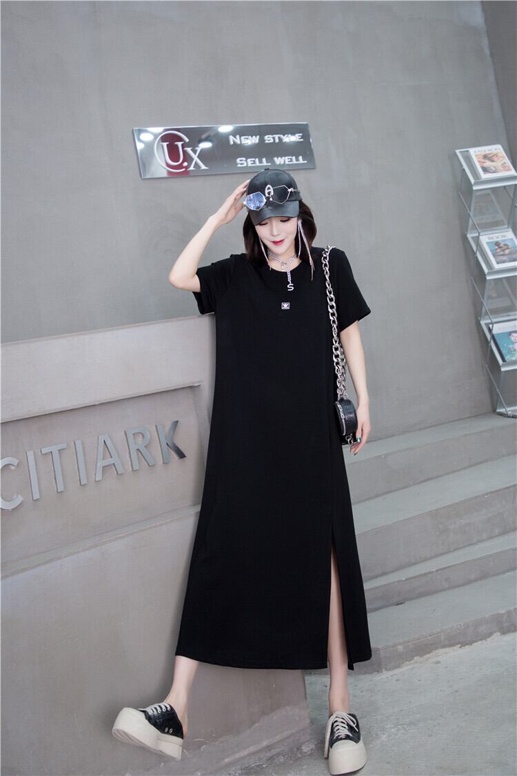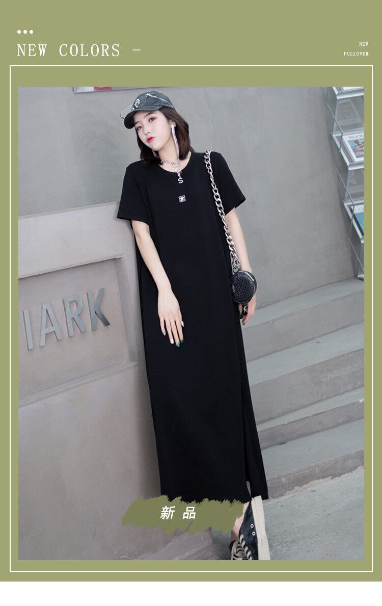 ラウンドネックドレス 大きめサイズ スカート Oネック ミックスインファッション38206404487