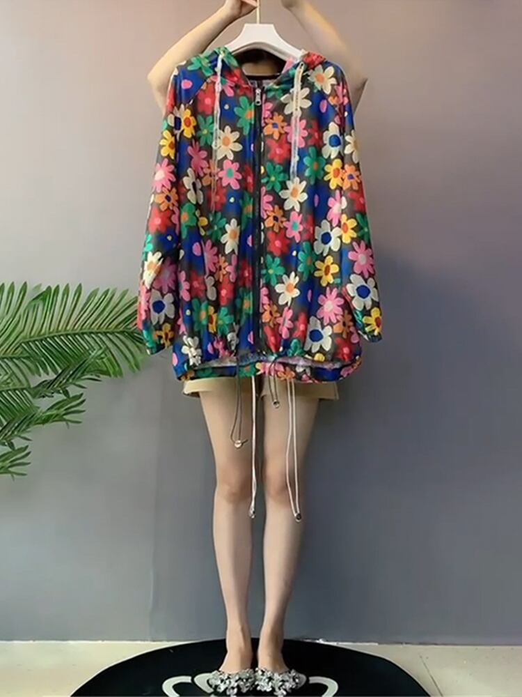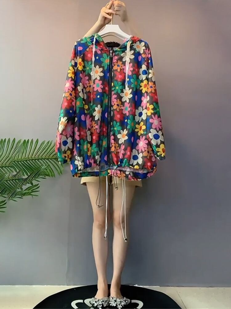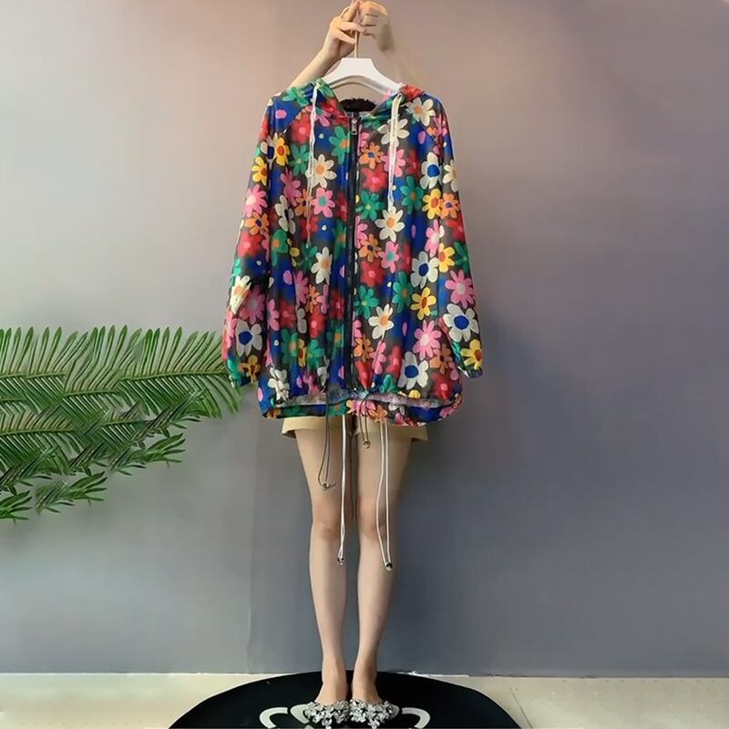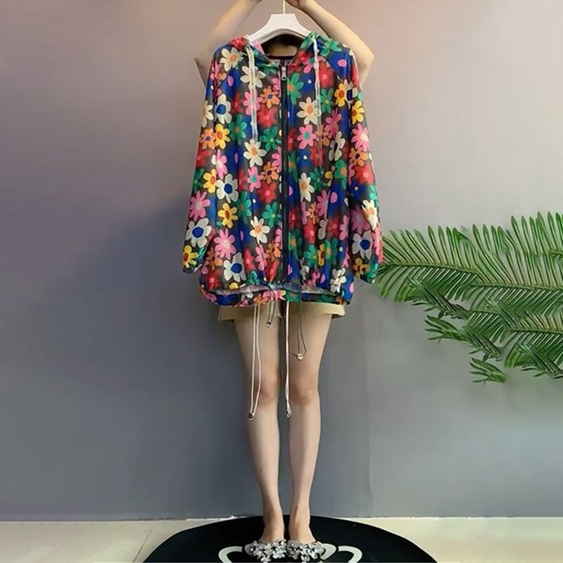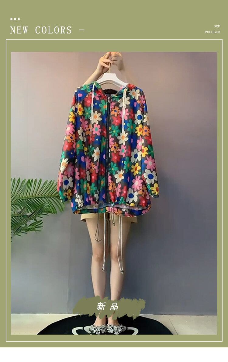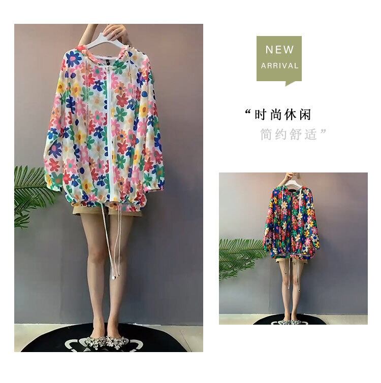 サマーフードFlowerデザイン シャツ Tシャツ 薄手トップス ロング 大きめサイズ 夏物 フラワーデザイン ミックスインファッション90046823436