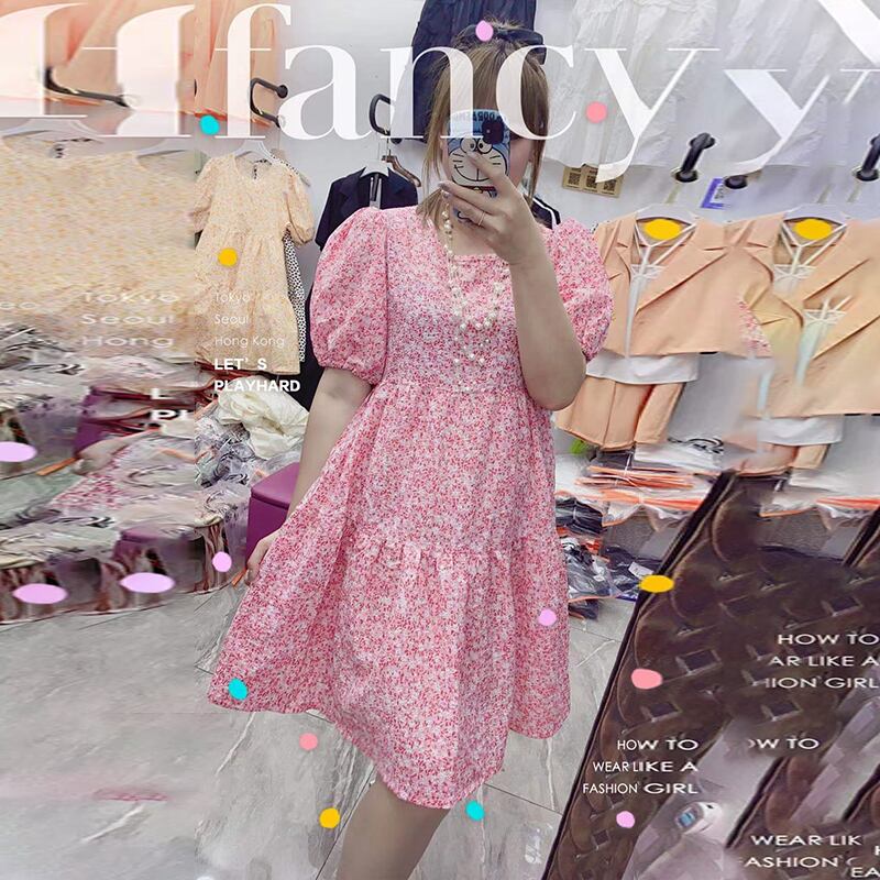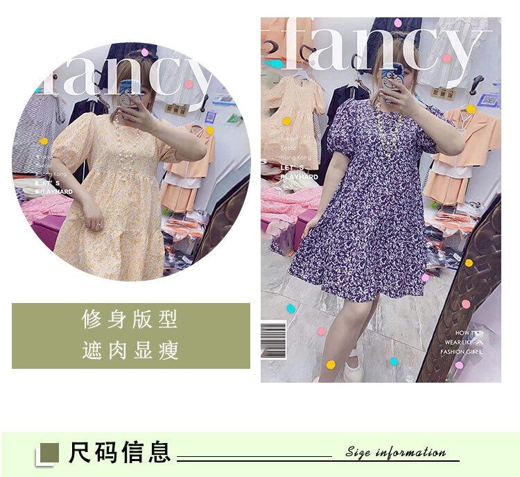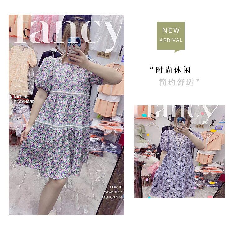 サマードレス ラウンドネックスリーブパターンFlowerデザイン スカート 大きめサイズ 夏物 Oネック フラワーデザイン ミックスインファッション33861457261
