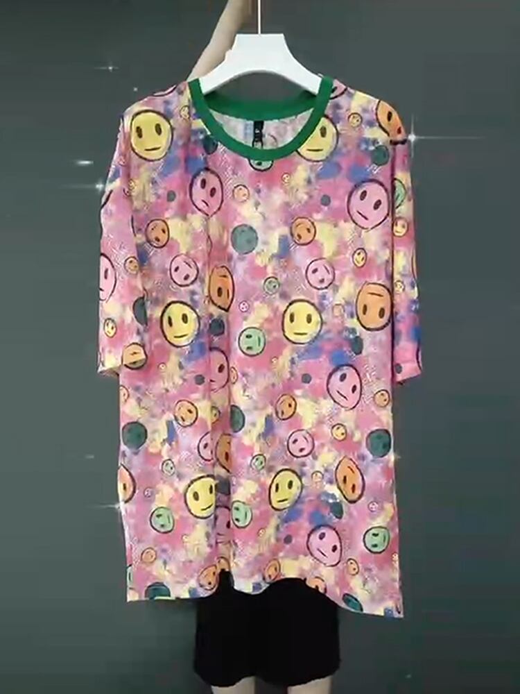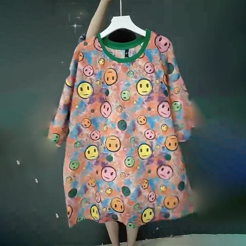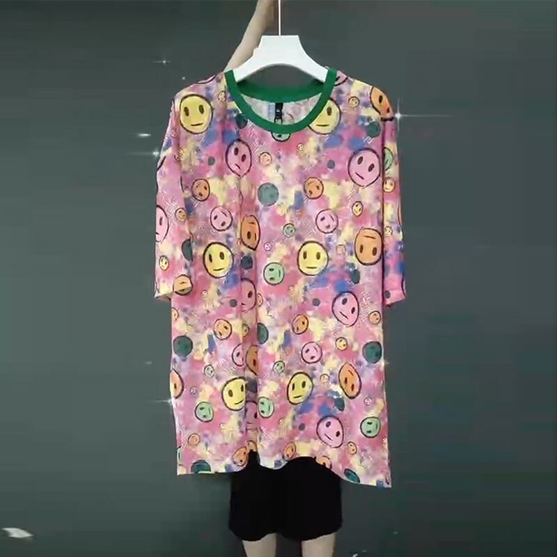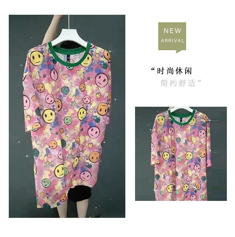 サマードレス プリントTシャツ シャツ ルーズ 大きめサイズ 夏物 ミックスインファッション90905293100