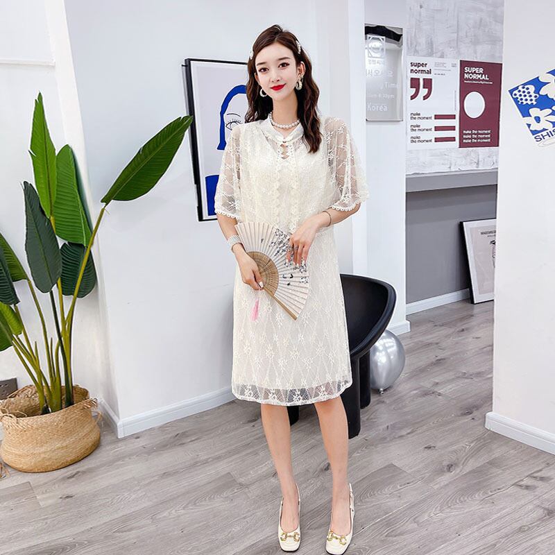 サマースリムレースドレス 大きめサイズ 夏物 ミックスインファッション13549382906