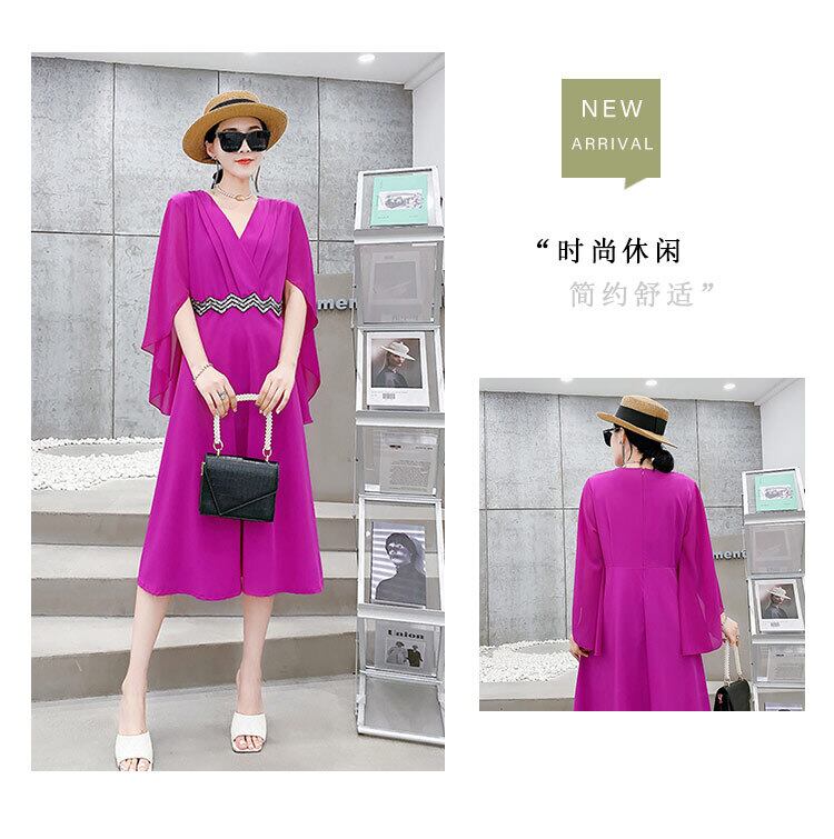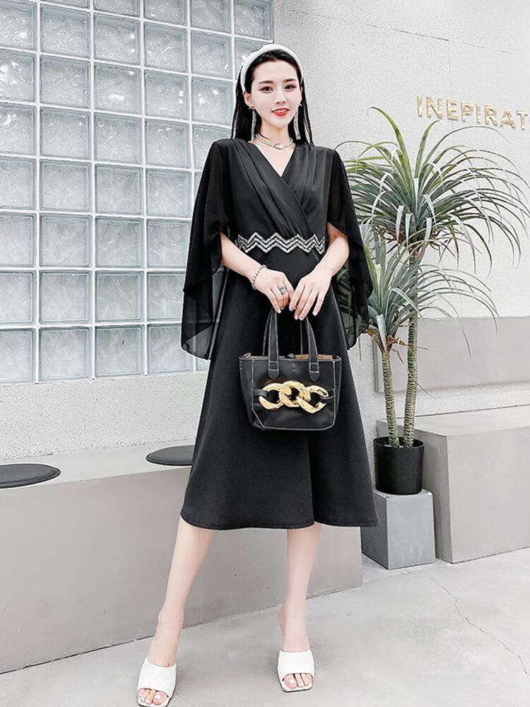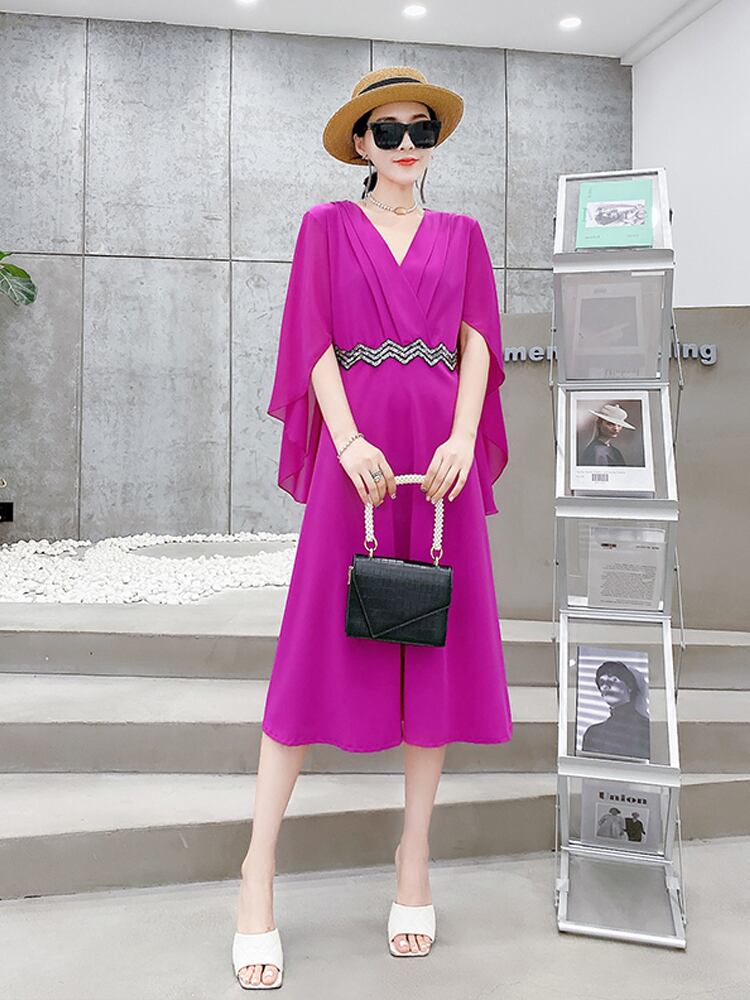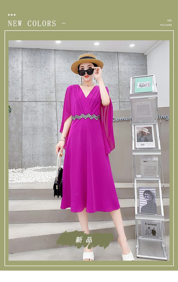 サマーVネックシフォンドレス 大きめサイズ 夏物 ミックスインファッション85081429344