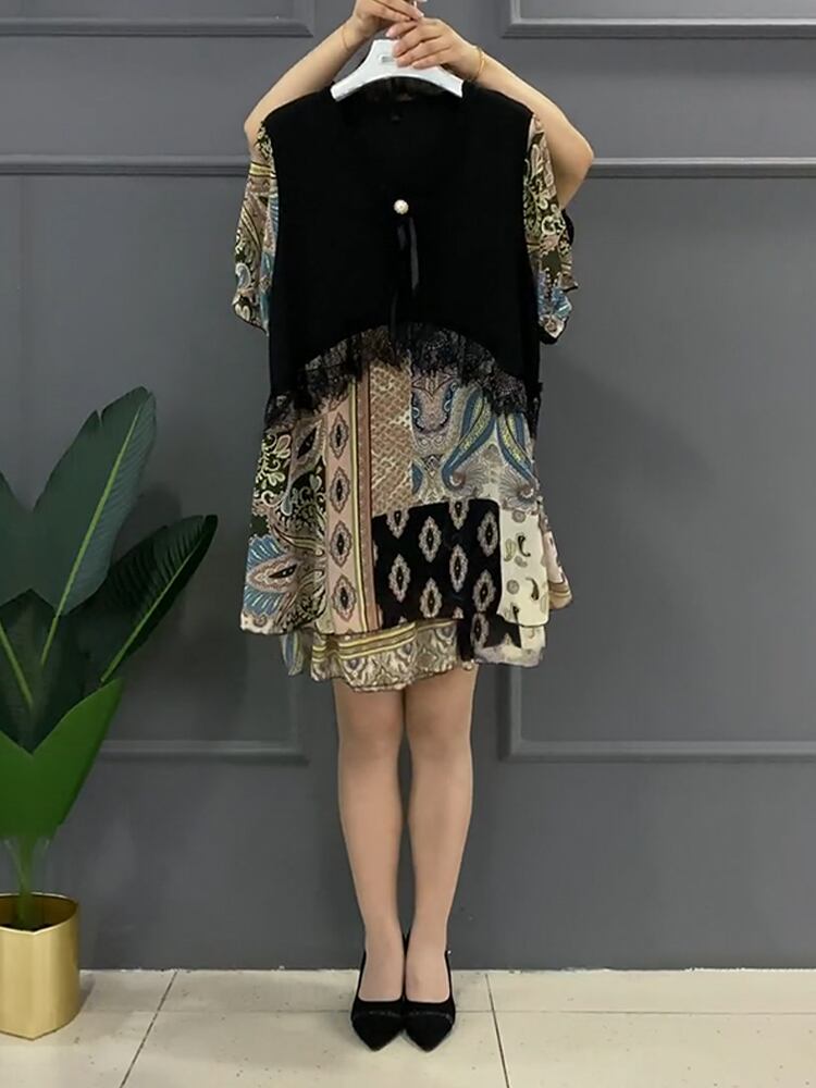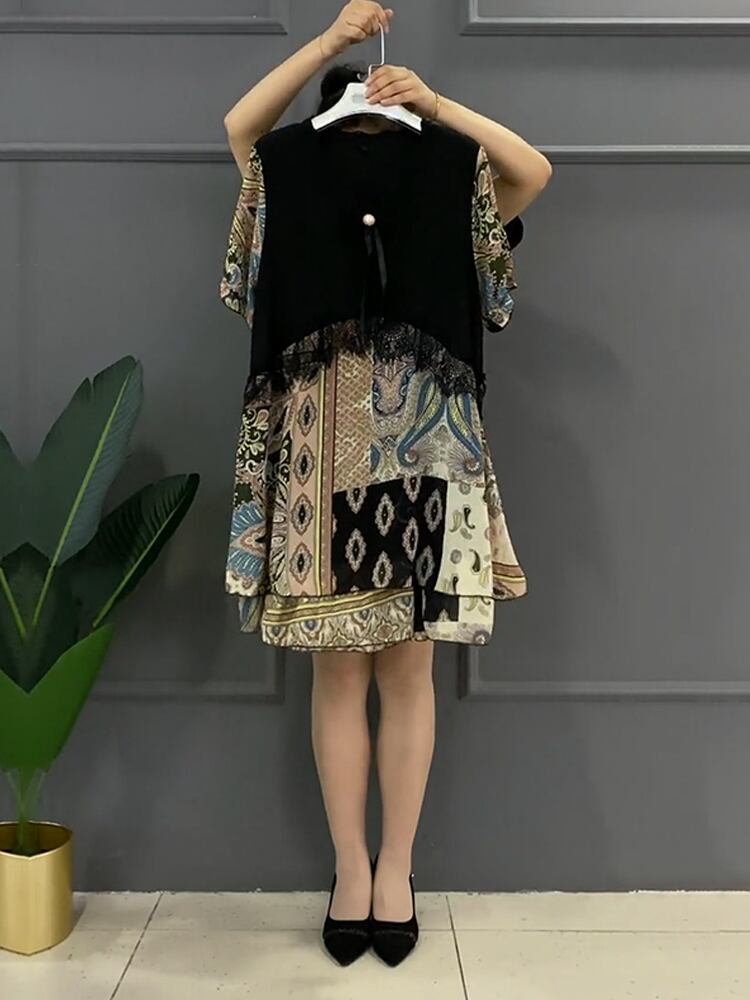 レーススタンダードパターンドレス 薄手 レトロ ヨーロピアン ステッチ ミックスインファッション13001103666