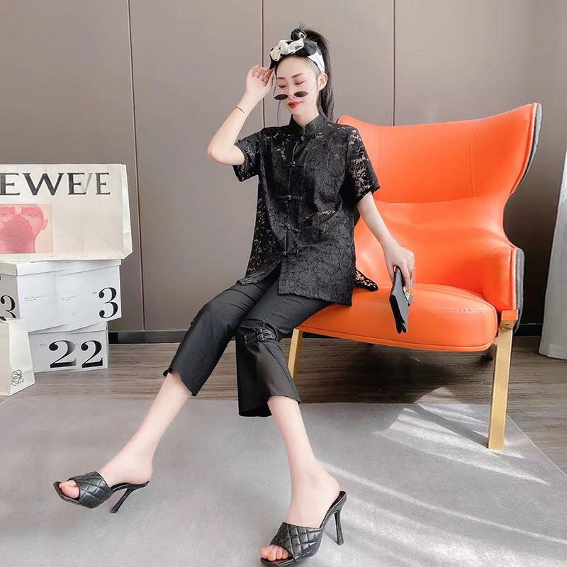 サマースタイルカラー自然派スタンダードシャツ スリムパンツ レトロ 大きめサイズ 夏物 ミックスインファッション54295488015