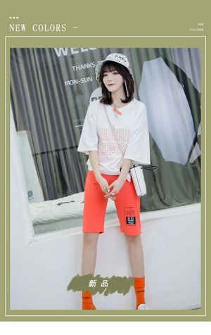 色:ホワイトTオレンジパンツツーピーススーツ,ホワイトTイエローパンツツーピーススーツ,ホワイトTブラックパンツツーピーススーツ,ブラックTピンクパンツツーピーススーツ