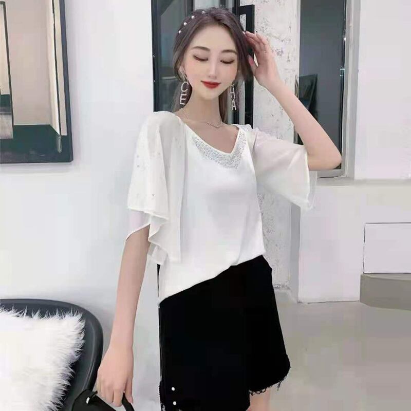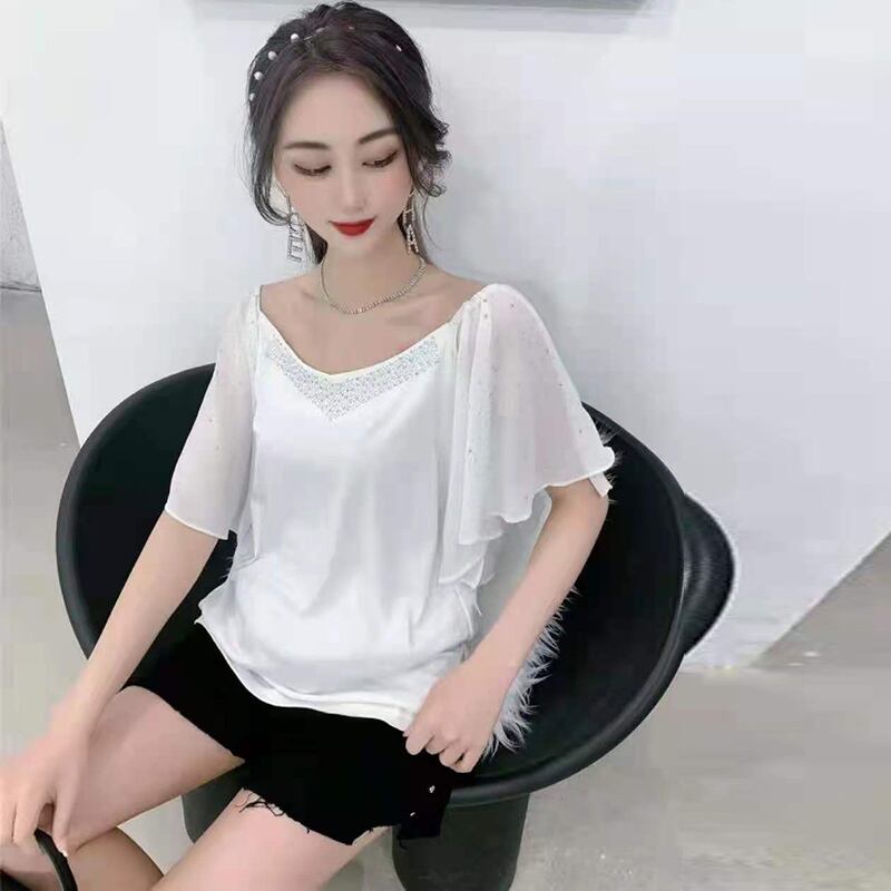 サマーラウンドネックメッシュルーズ薄手トップス 大きめサイズ エレガント 夏物 Oネック ミックスインファッション63266472795
