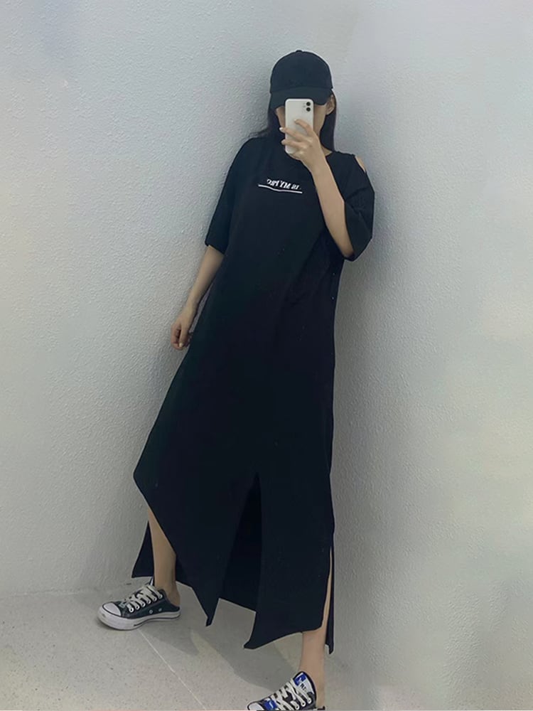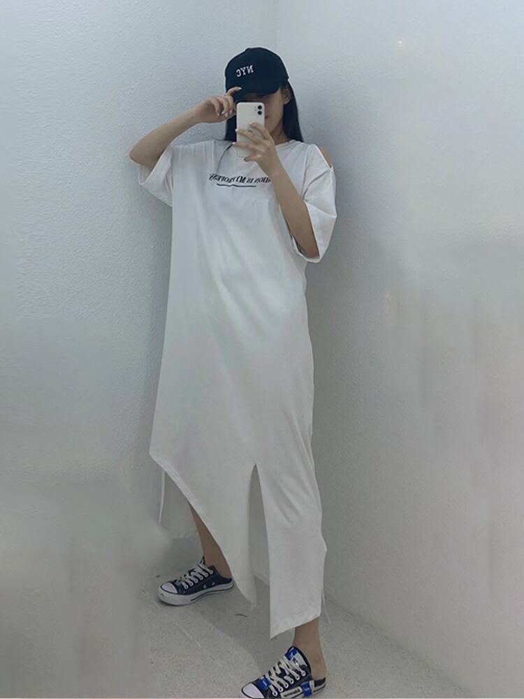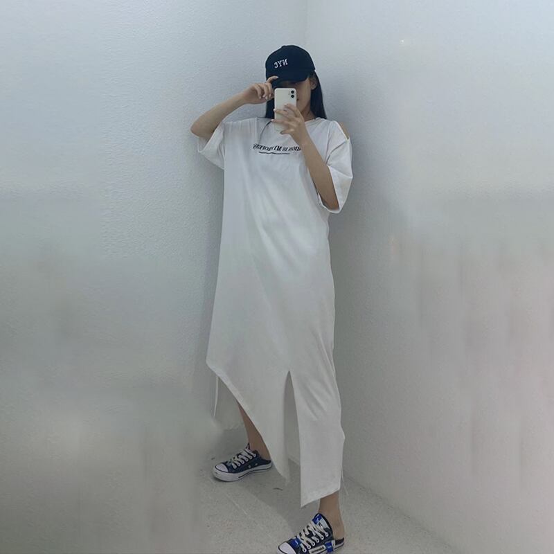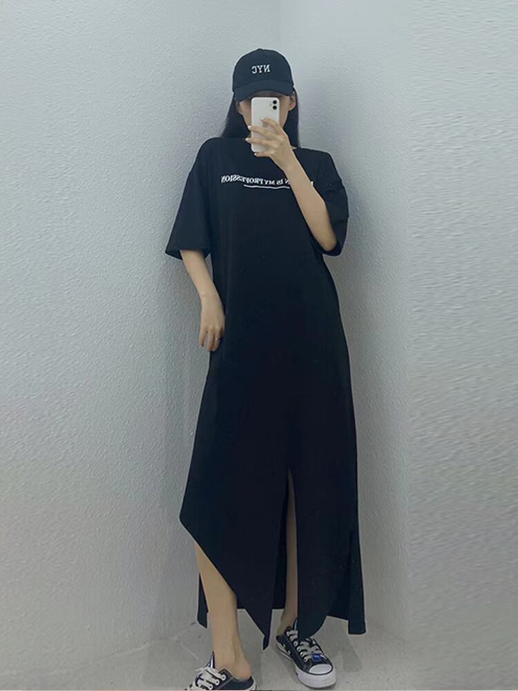 サマードレス ロングスカート スリット 大きめサイズ 夏物 ミックスインファッション8105642494