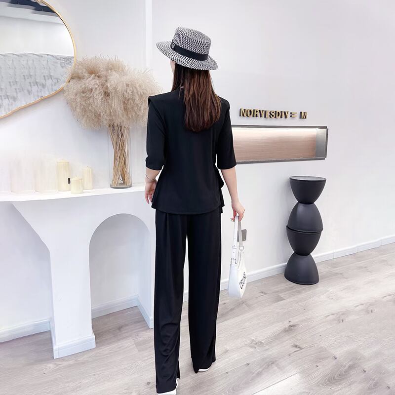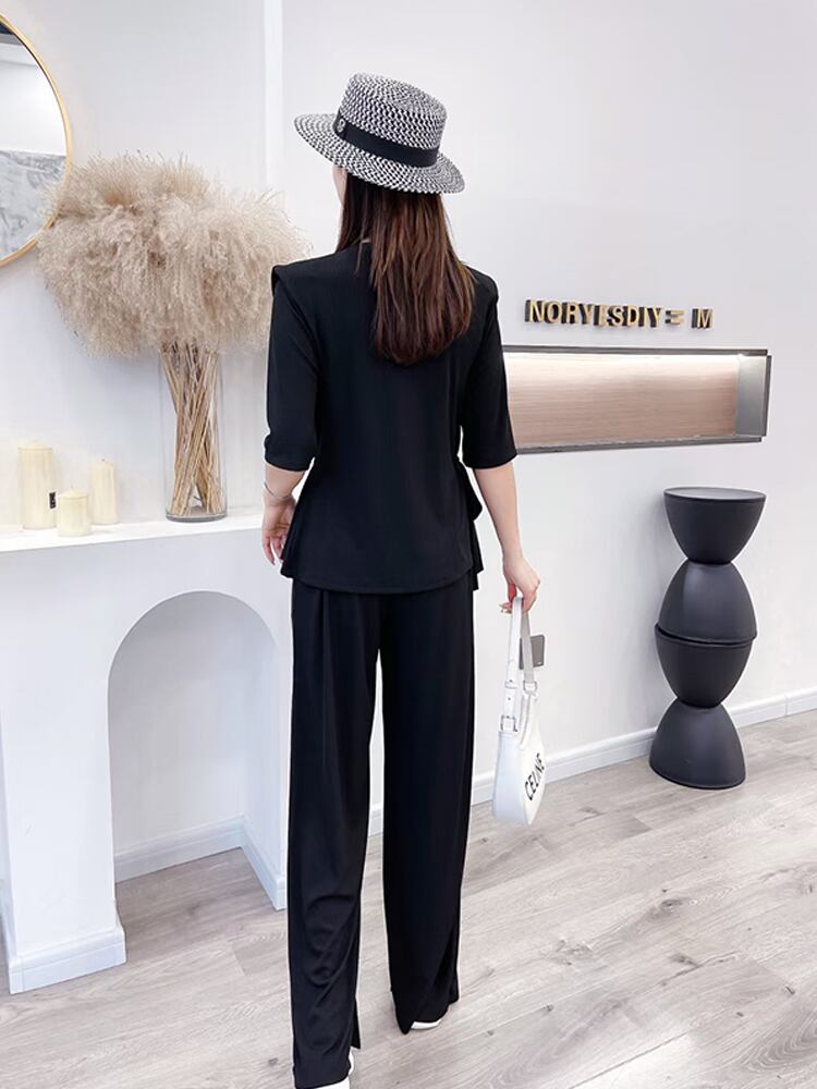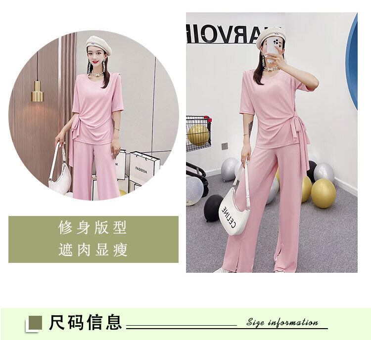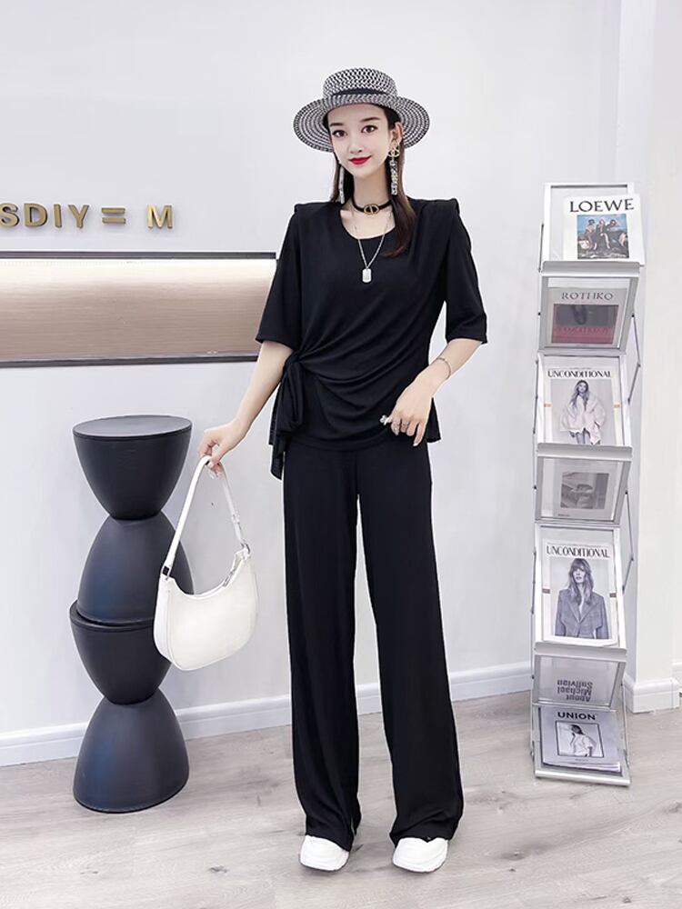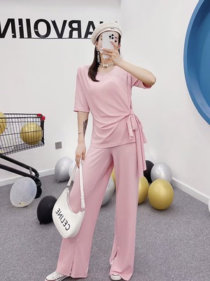 カジュアルソリッド カラーブラウス ワイドレッグパンツ レース 大きめサイズ ワイドパンツ レースアップ ソリッドカラー ミックスインファッション68479393607