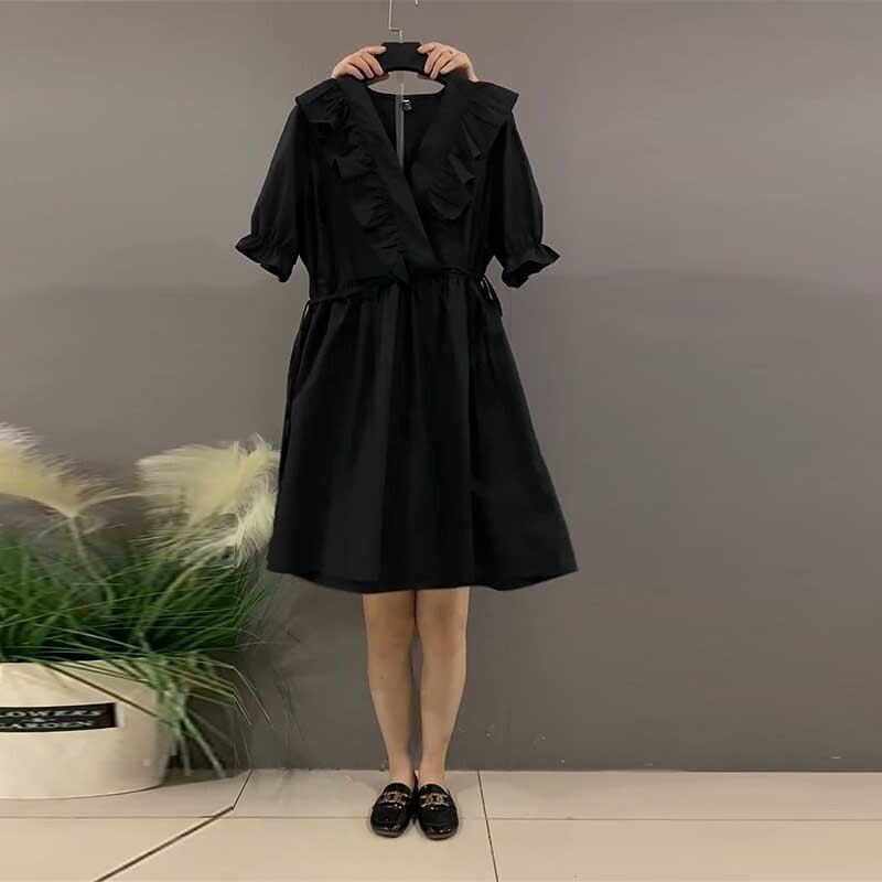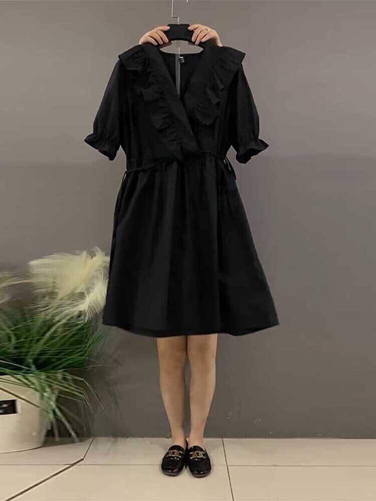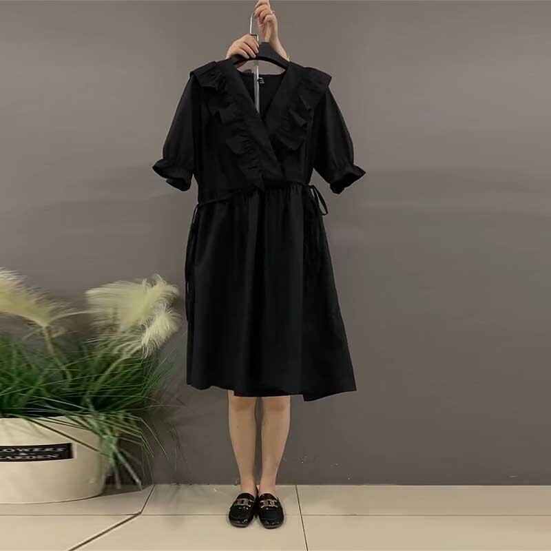 サマードレス ウェストスリムスカート 大きめサイズ 夏物 ミックスインファッション98737108902