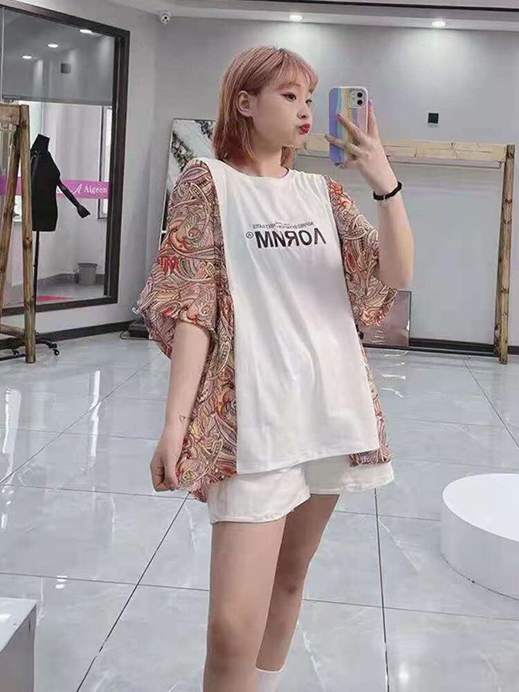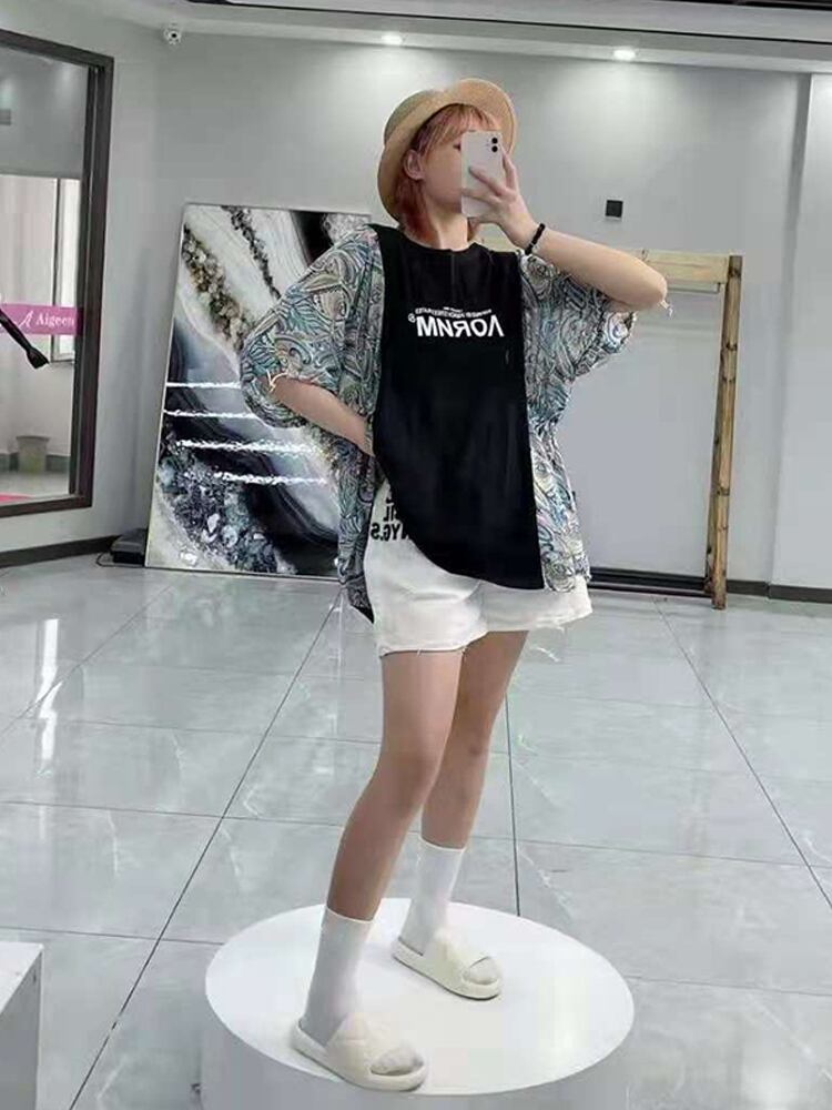 ラウンドネックTシャツ ルーズスリムトップス 大きめサイズ Oネック ミックスインファッション59913930522