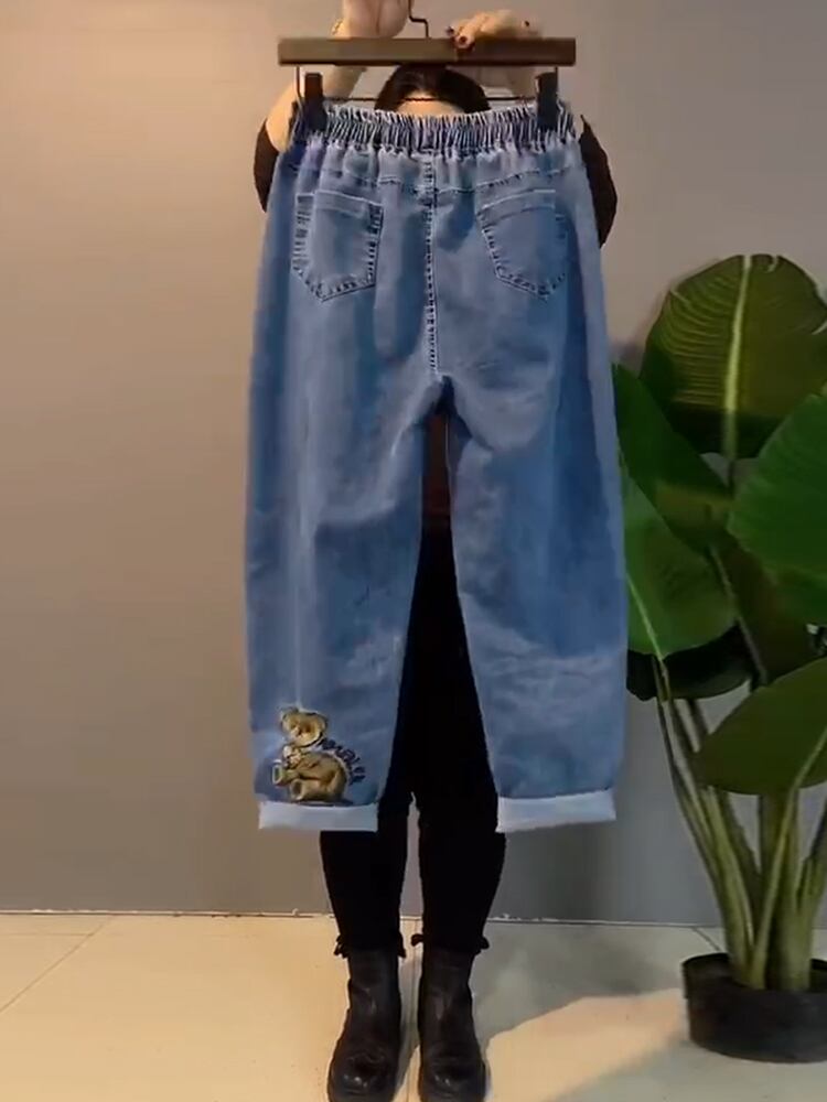 スプリングストレッチウェストジーンズ エラスティック 伸縮 大きめサイズ 春物 ミックスインファッション89229171926
