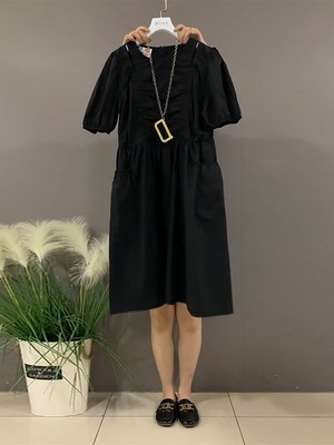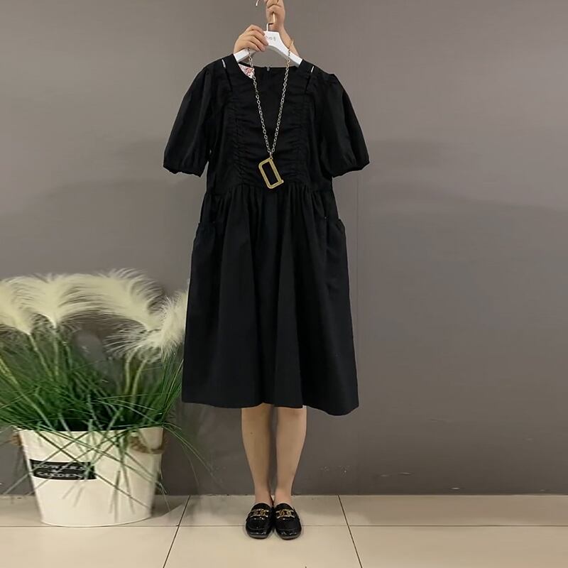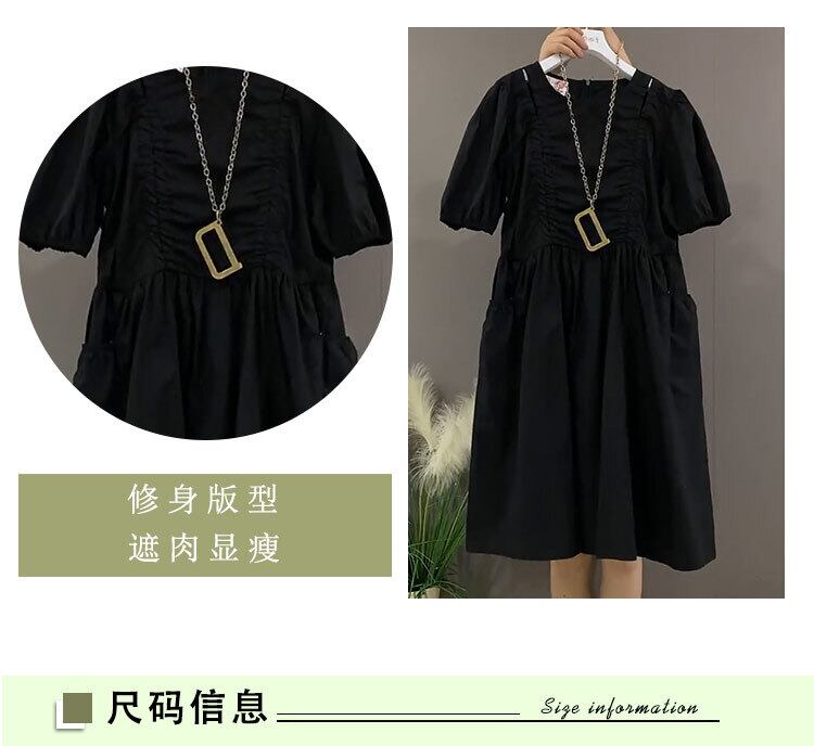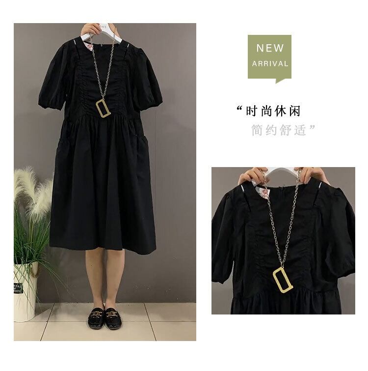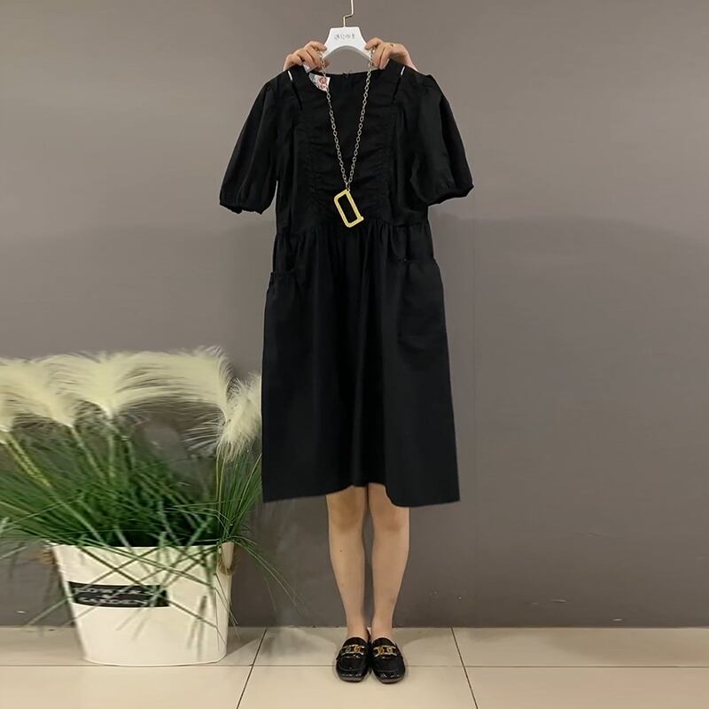 サマーウェストルーズ薄手ラウンドネックドレス 大きめサイズ 夏物 Oネック ミックスインファッション69206336413