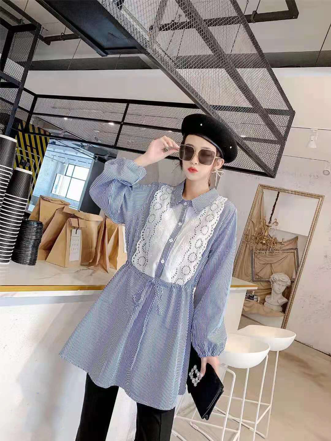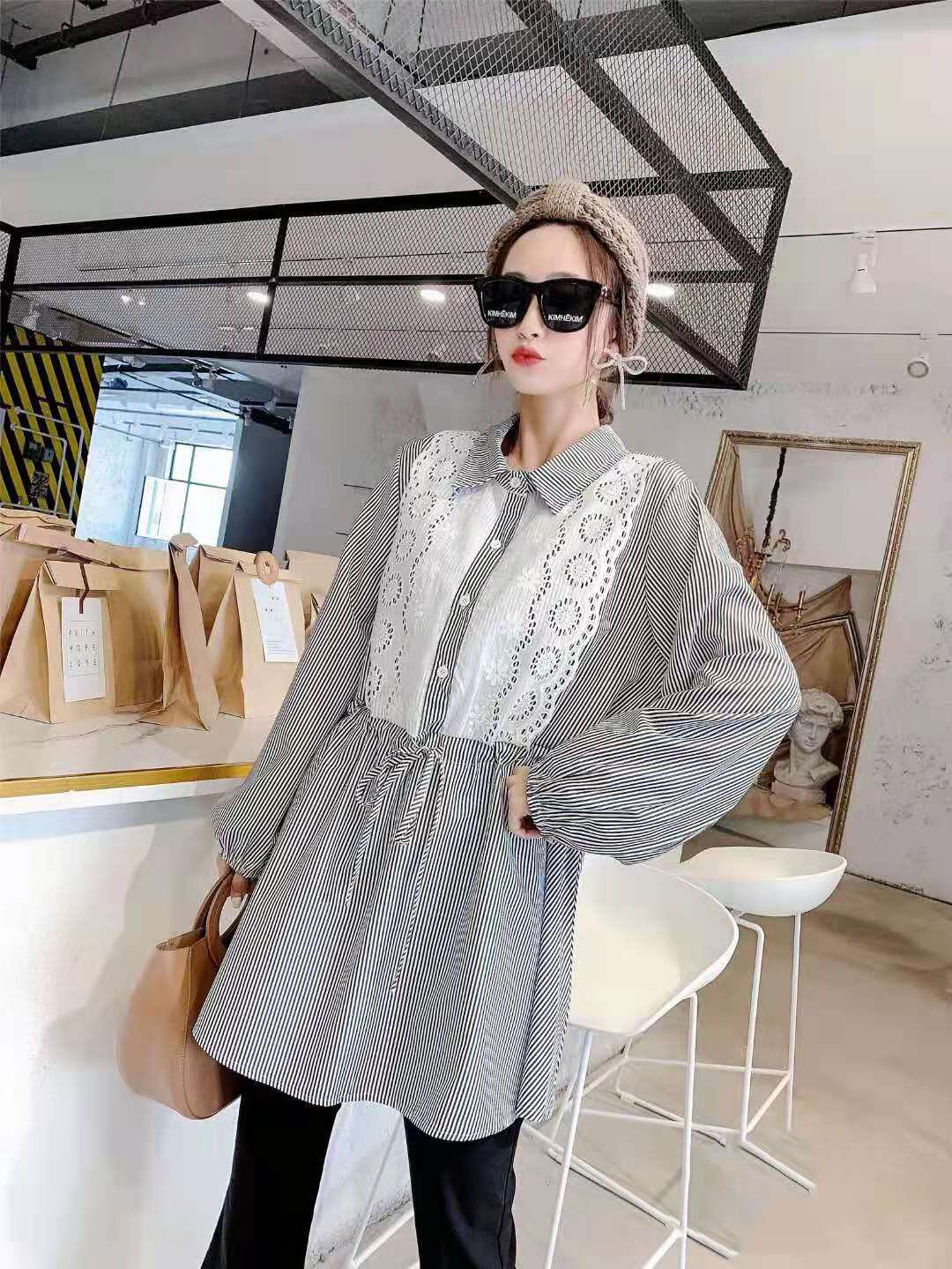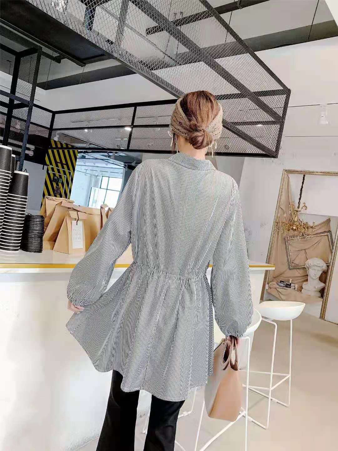 スプリングスタイルストライプストレッチウェストシャツ エラスティック 伸縮 大きめサイズ 春物 ステッチ ミックスインファッション53777344892