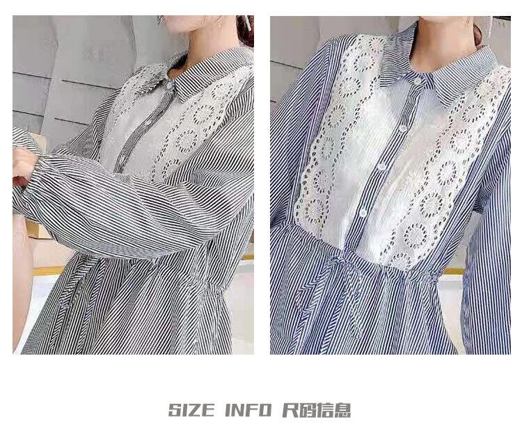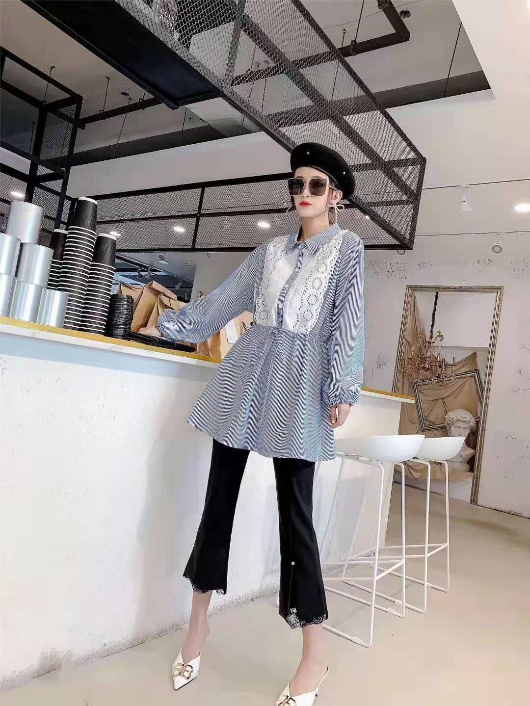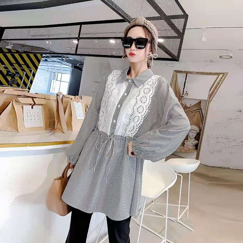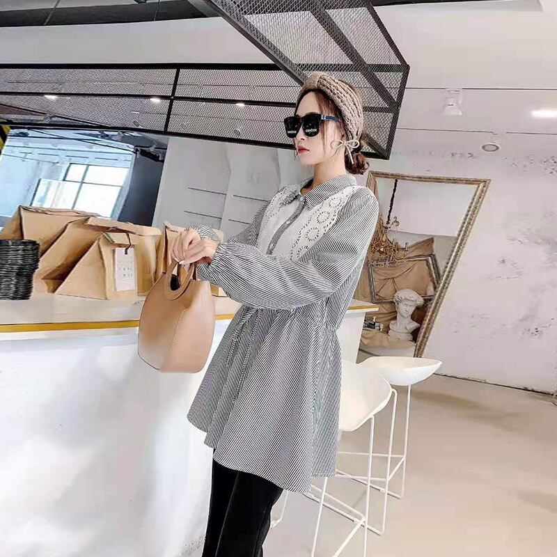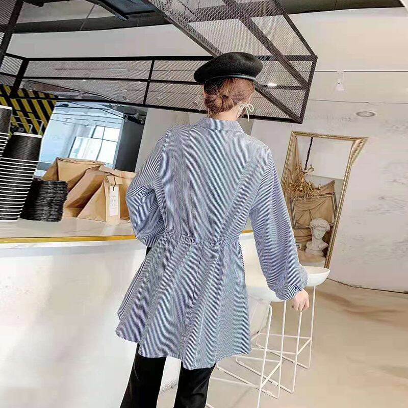 スプリングスタイルストライプストレッチウェストシャツ エラスティック 伸縮 大きめサイズ 春物 ステッチ ミックスインファッション53777344892