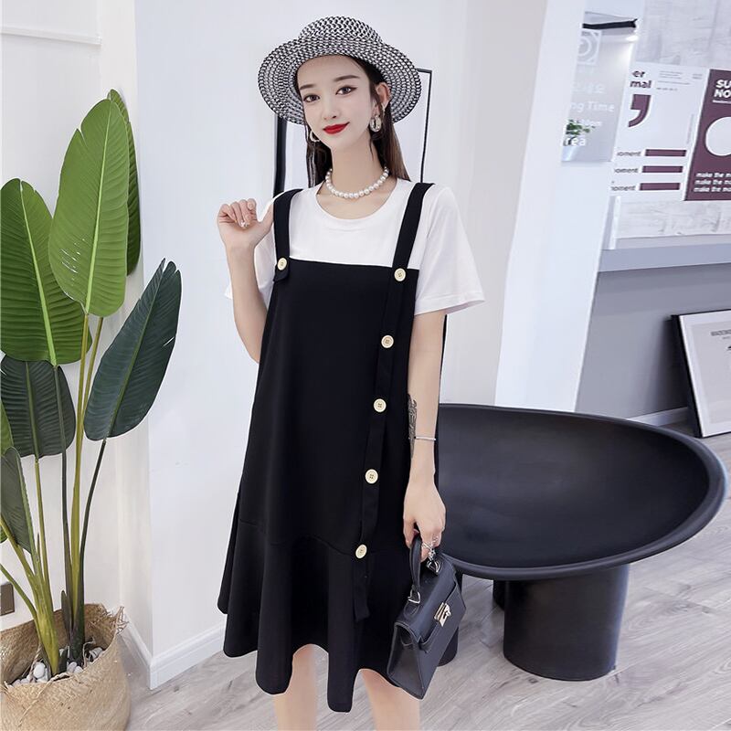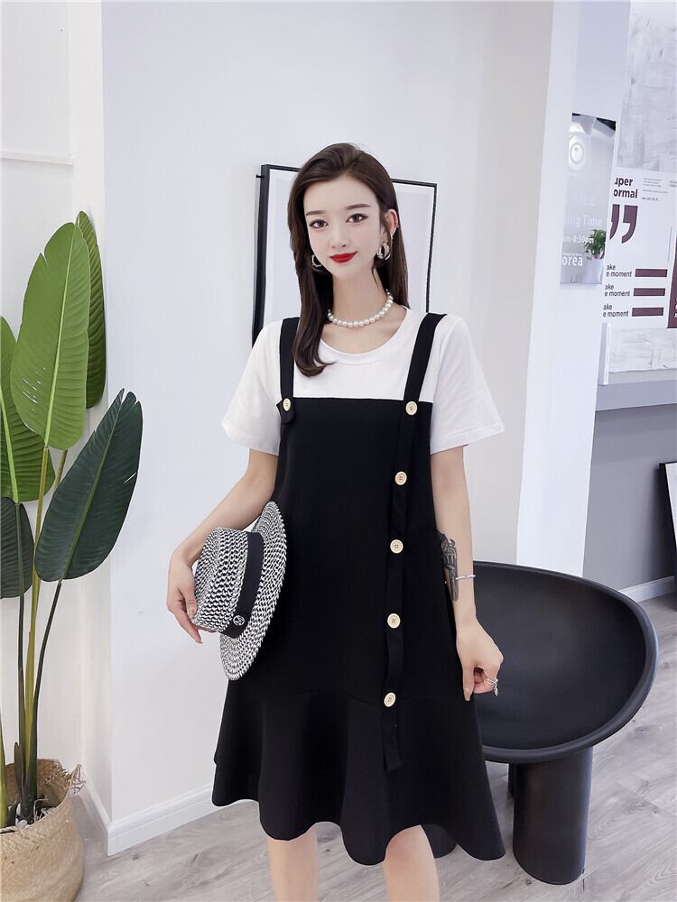 ラウンドネックブレストルーズドレス 大人ガーリー スウィート キュート カジュアル Oネック ステッチ ミックスインファッション11230290833
