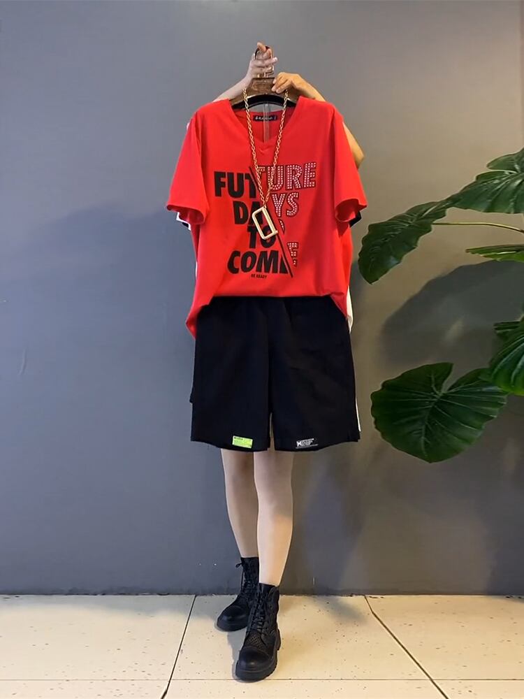 色:レッドT,ホワイトT,ブラックT,ホワイトショーツ,黒のショートパンツ