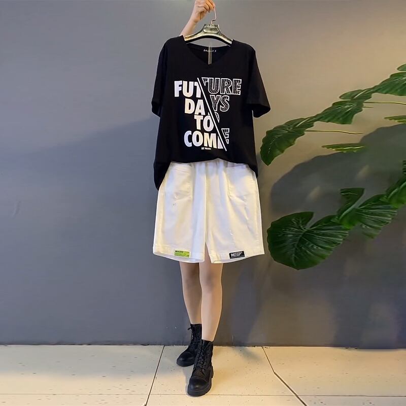トップス ルーズTシャツ 薄手サマーショーツ 大きめサイズ 夏物 ブルマー ミックスインファッション63653648461