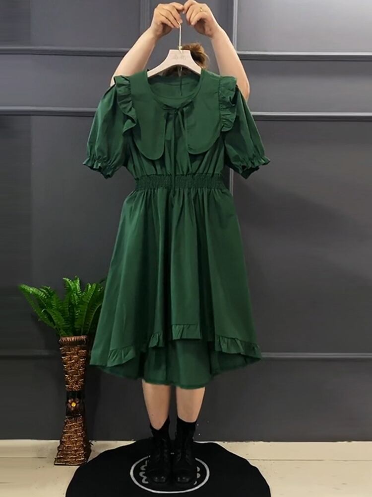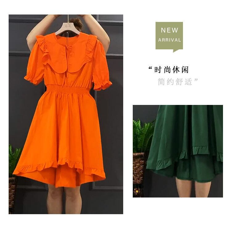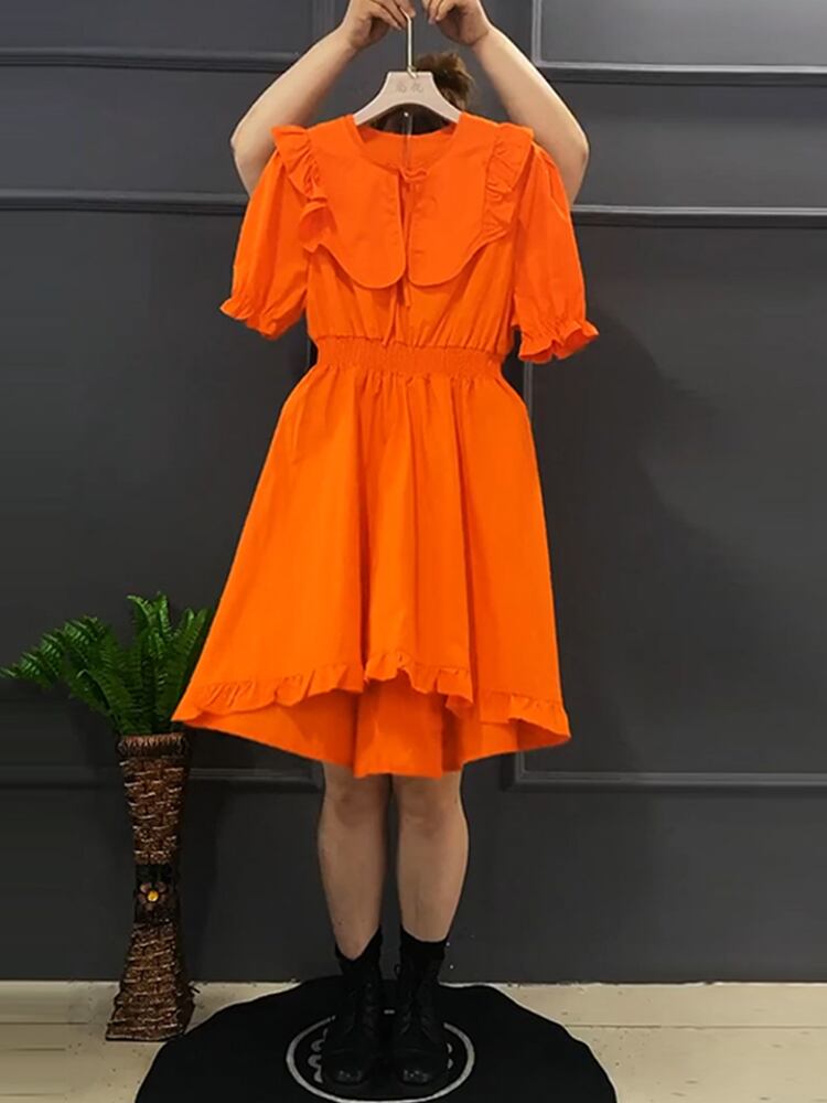 サマードレス カラーウェスト薄手スカート レッド 大きめサイズ 夏物 ミックスインファッション32937296695