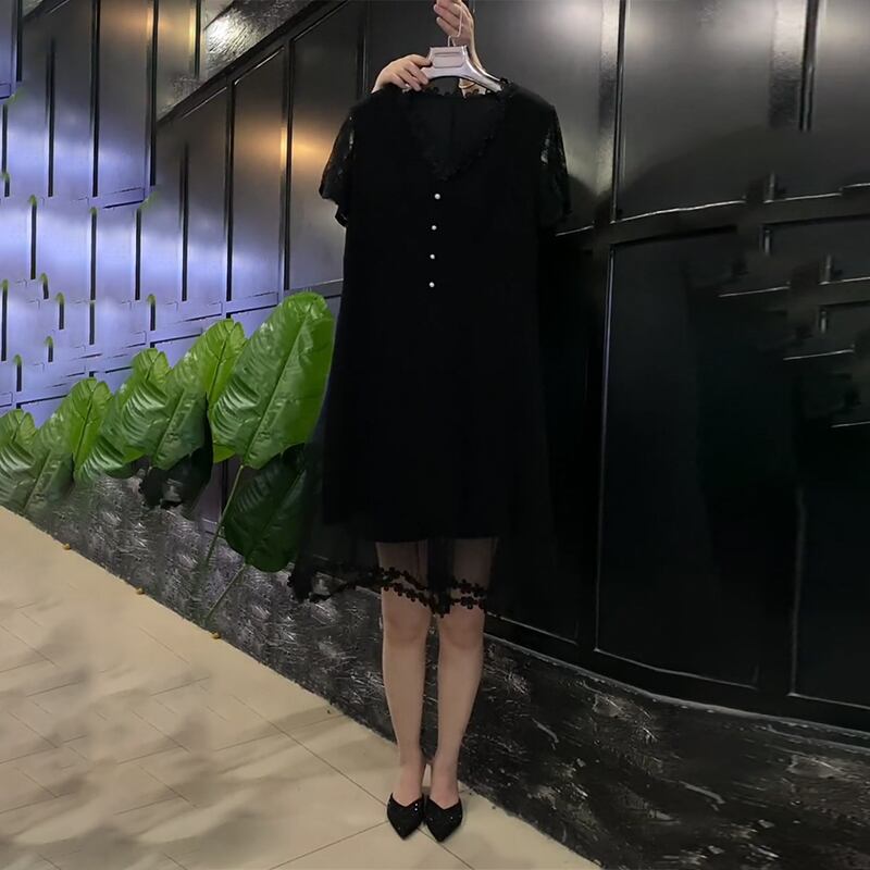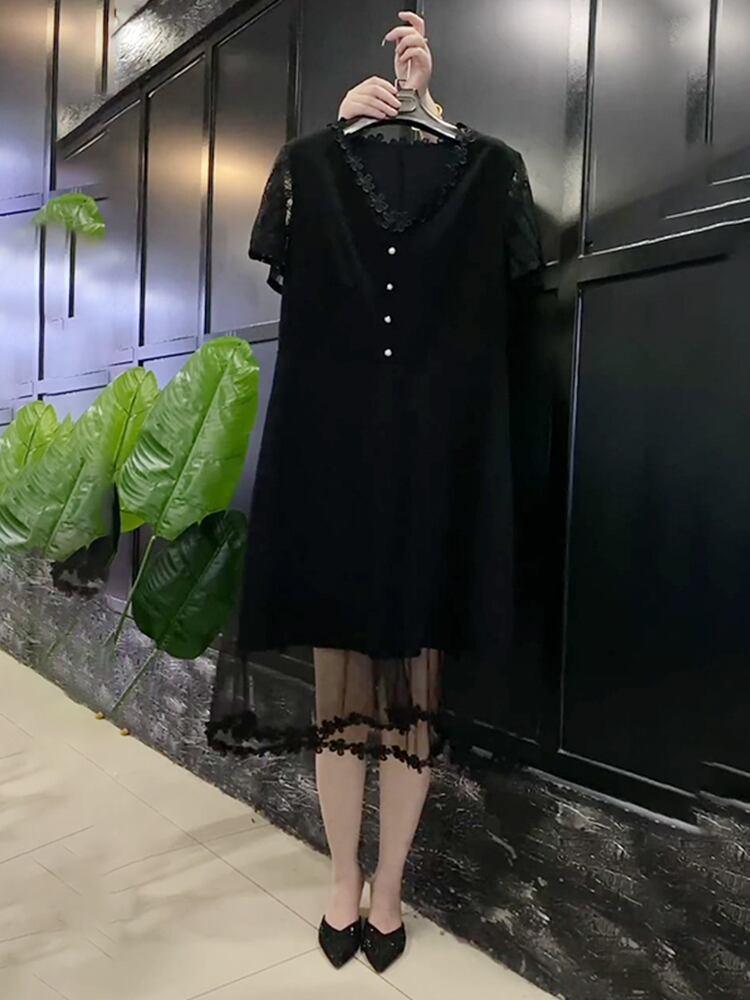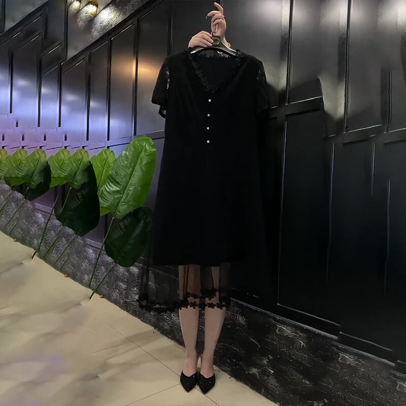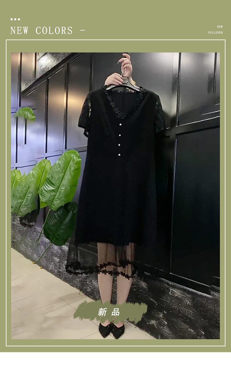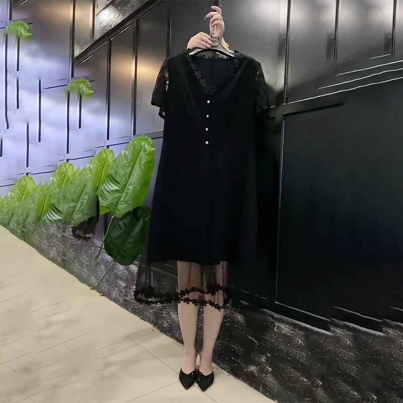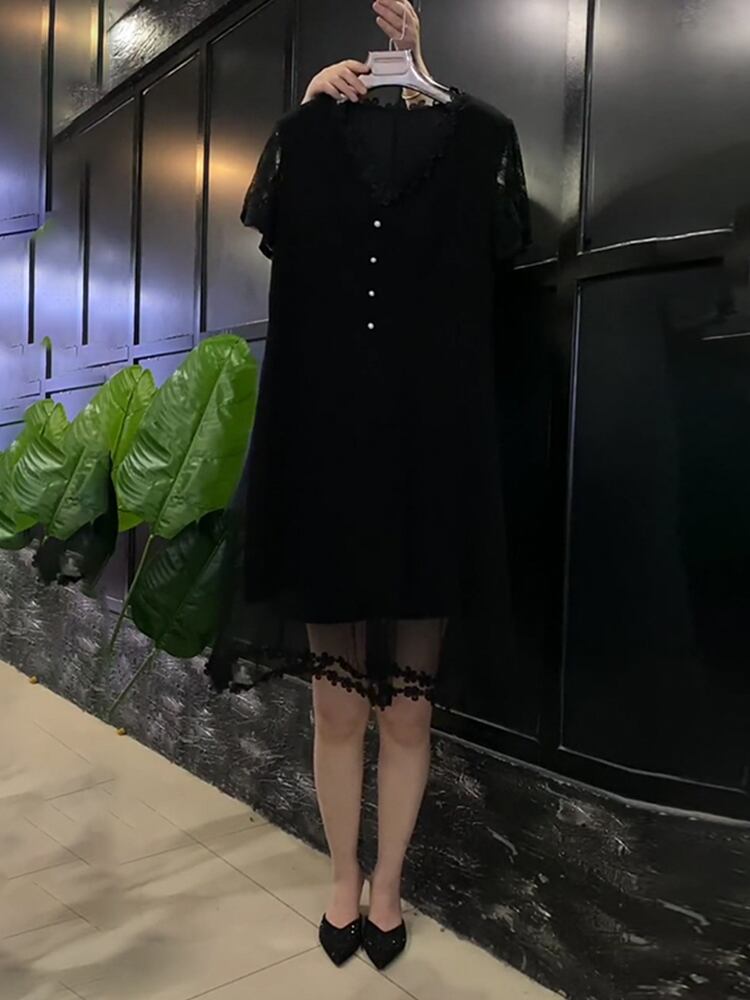 Vネックメッシュドレス サマースリム 大きめサイズ 夏物 ミックスインファッション66271154454
