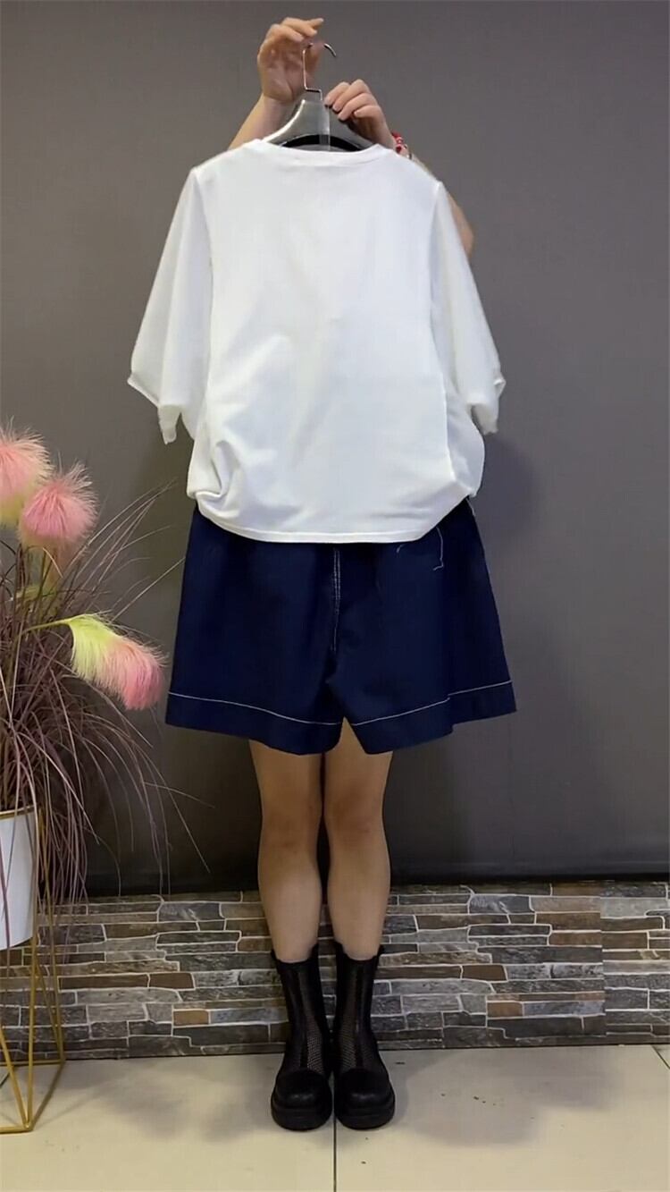 サマーTシャツ スタイルトップス ショーツ 大きめサイズ 夏物 ブルマー ミックスインファッション45924172662