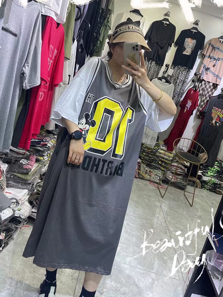 サマードレス ルーズスカート 大きめサイズ 夏物 ミックスインファッション57530255157