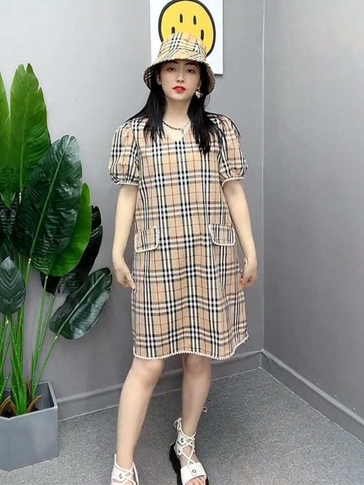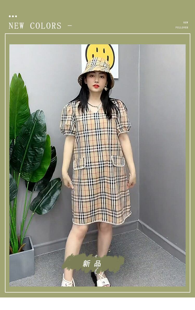 サマードレス スタイルルーズ格子柄スカート 大きめサイズ 夏物 ミックスインファッション65307574219