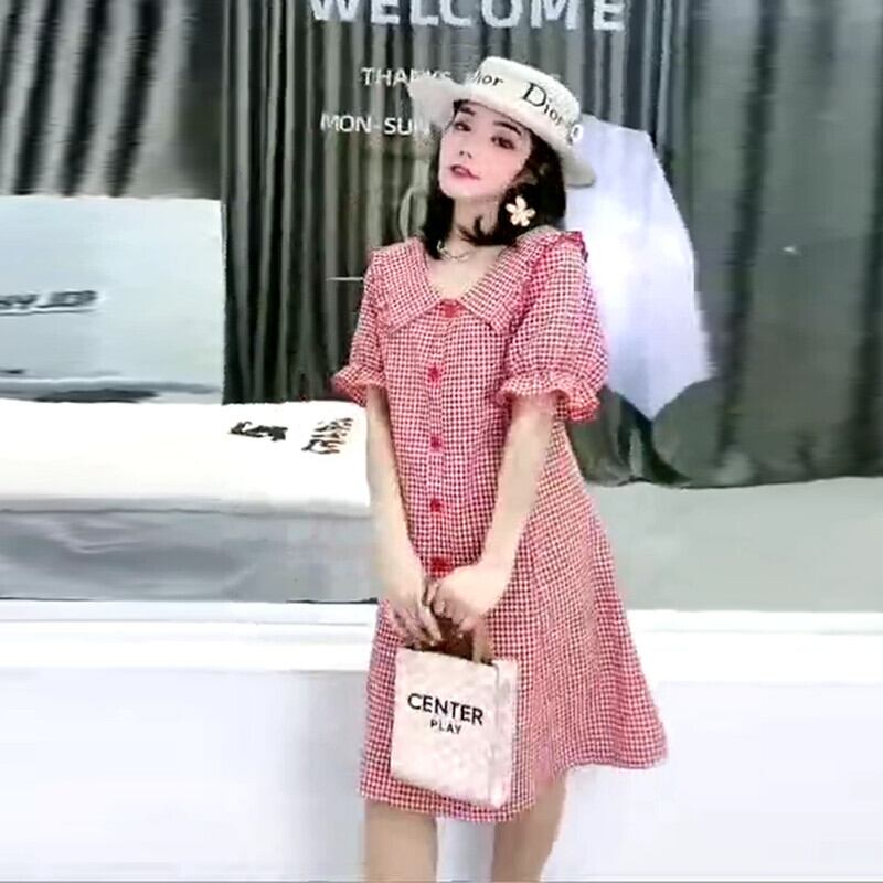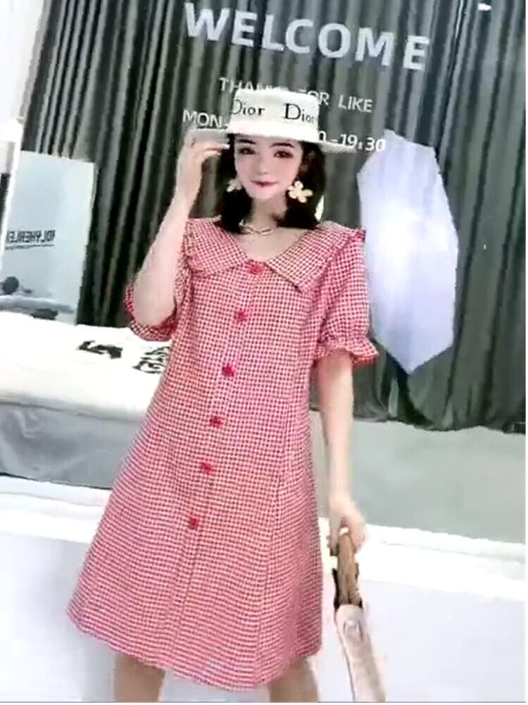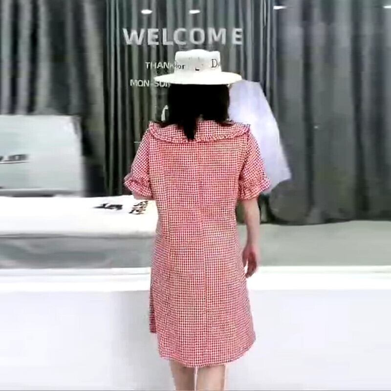 Aライン格子柄ドレス 大きめサイズ ミックスインファッション58065069341