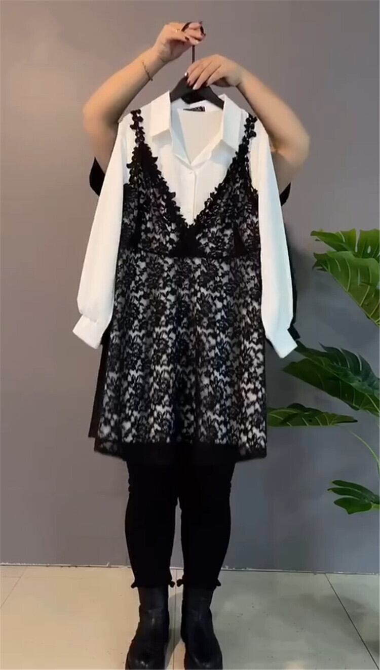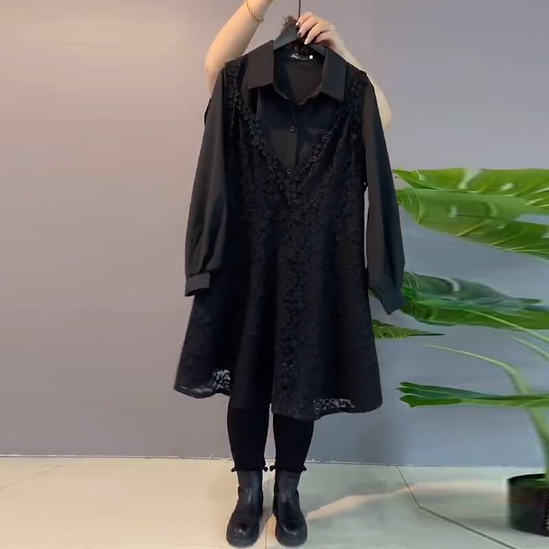 スプリングロングシャツ レースドレス 大きめサイズ 春物 ミックスインファッション21659315853