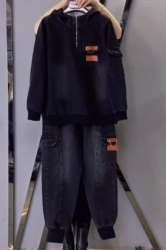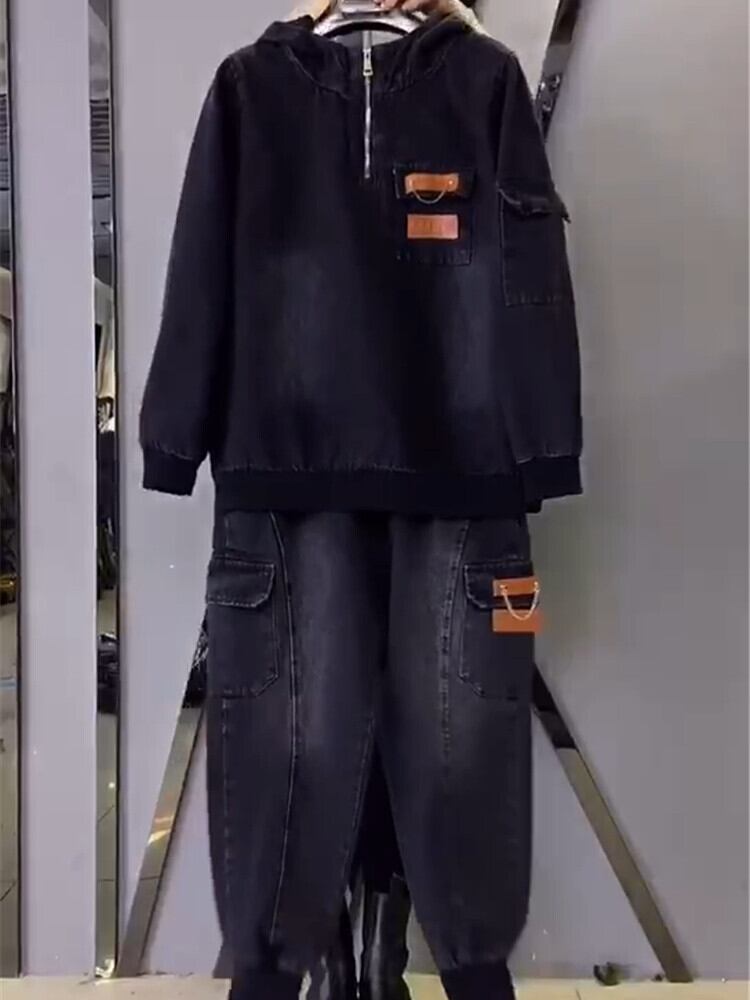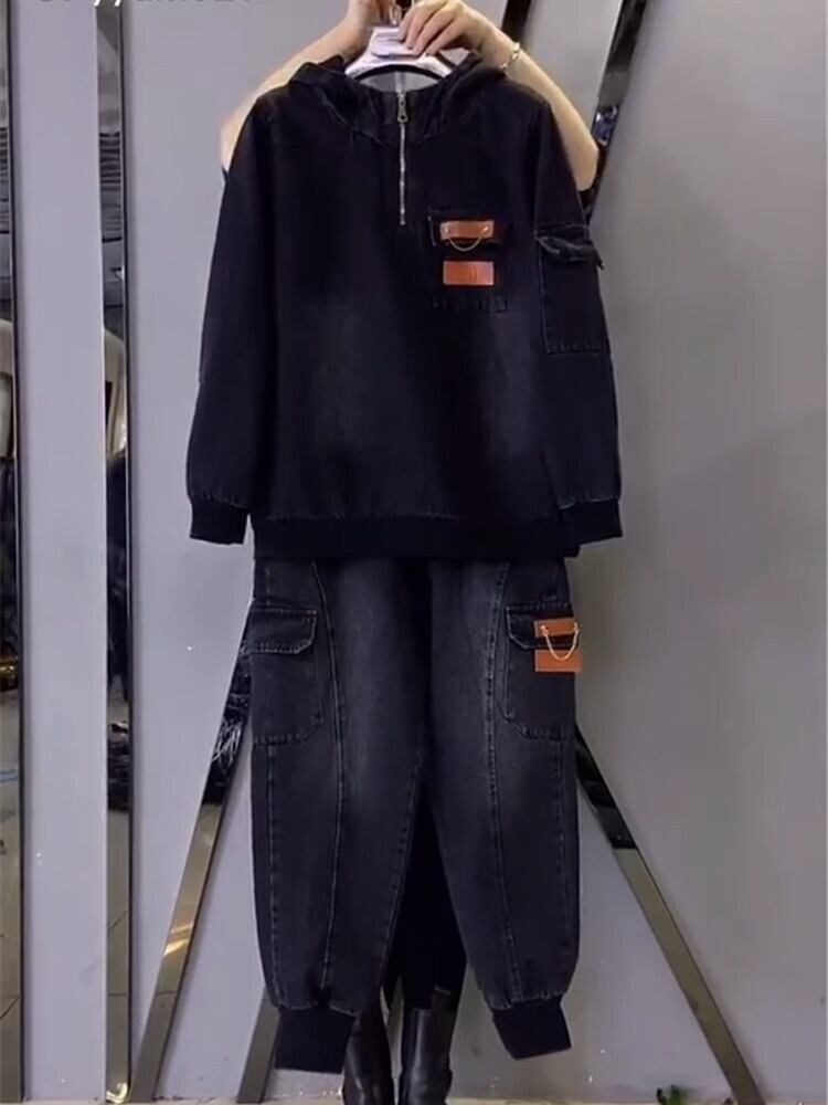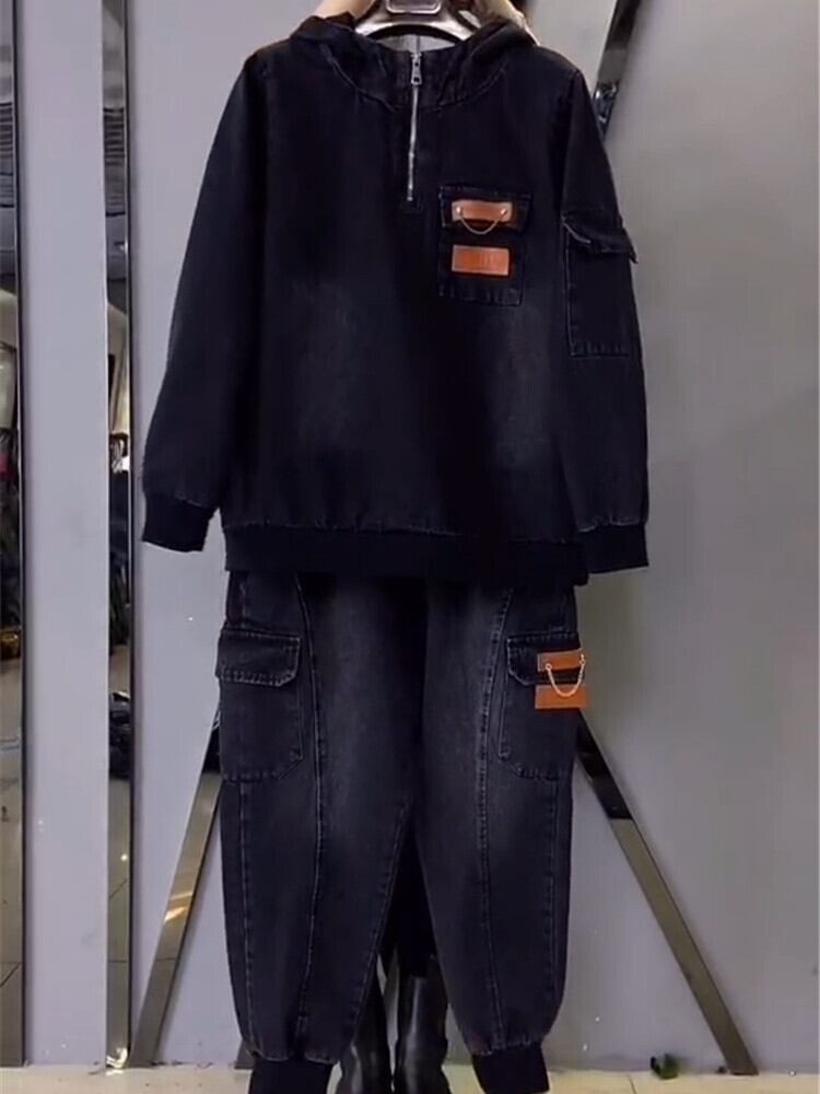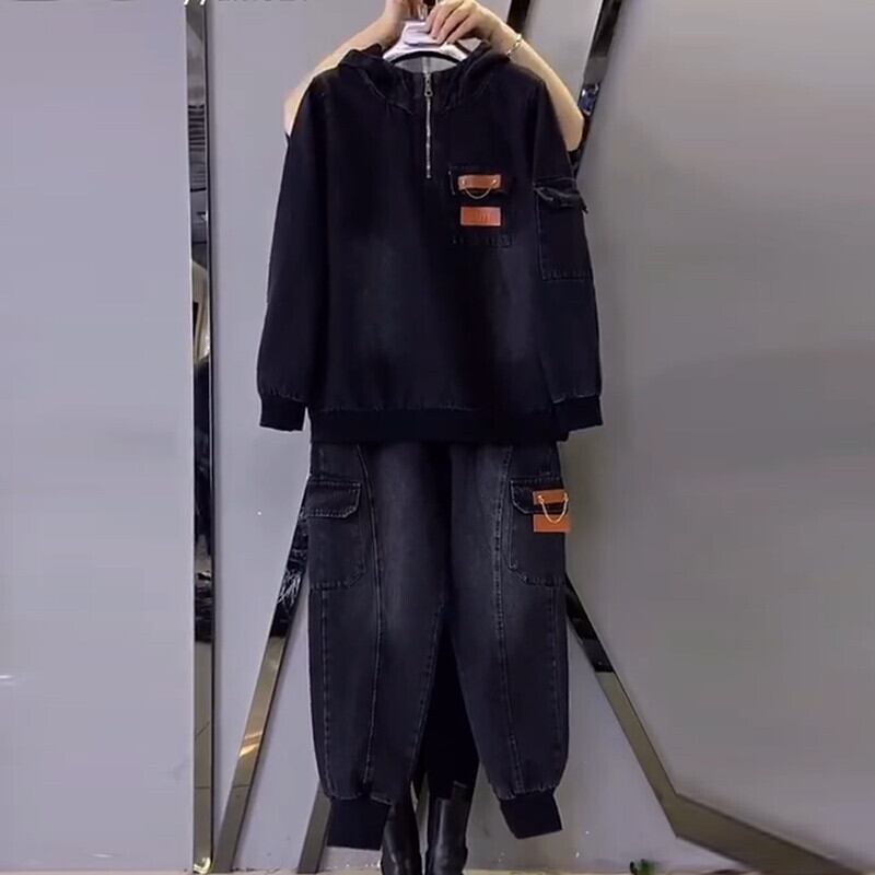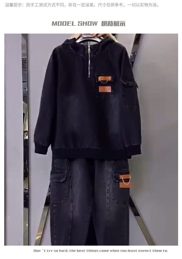 スプリングフードジッパーセーター スタイルパンツ 大きめサイズ 春物 ミックスインファッション28131030231