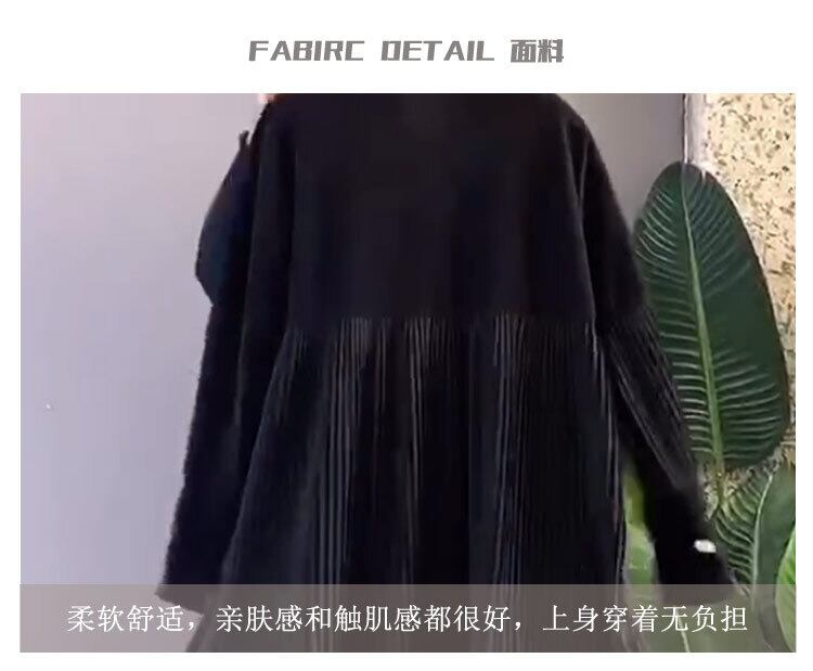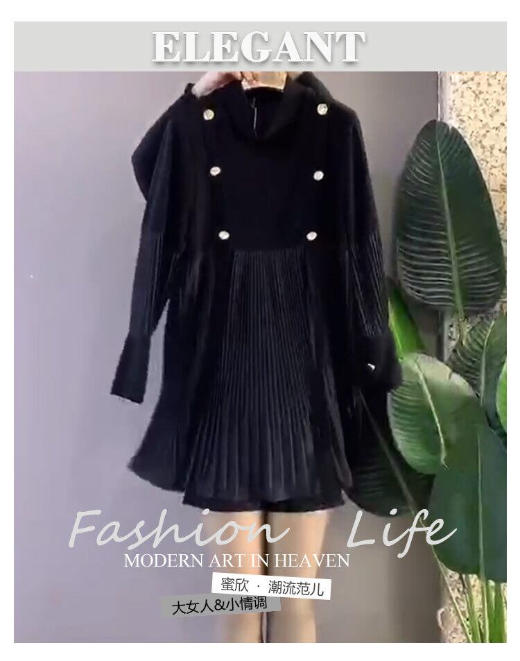 スプリングボタンプリーツドレス 大きめサイズ 春物 ステッチ ミックスインファッション53982807549