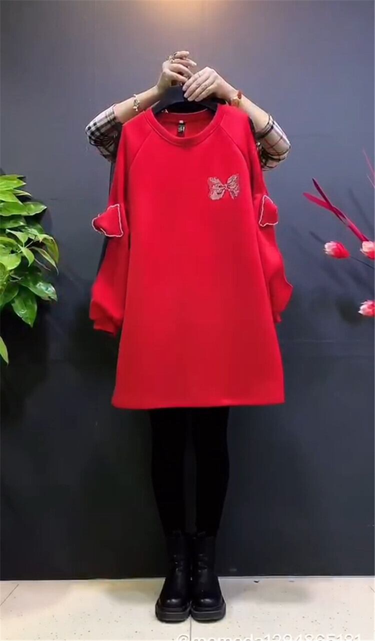スプリングリボンパターンドレス ルーズ 大きめサイズ 春物 ミックスインファッション71417378103