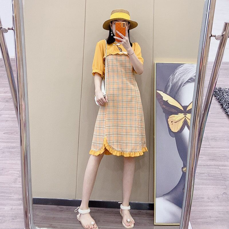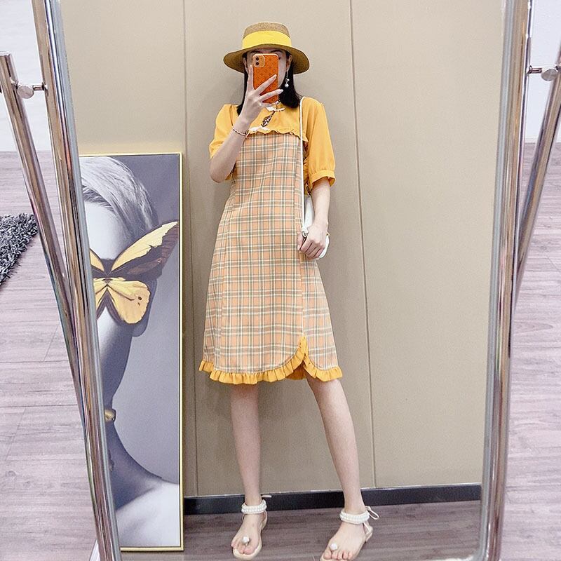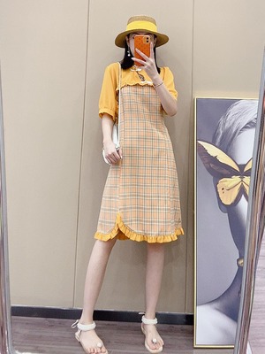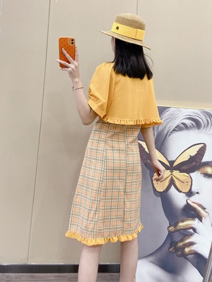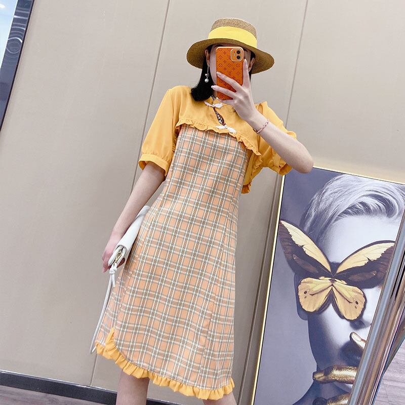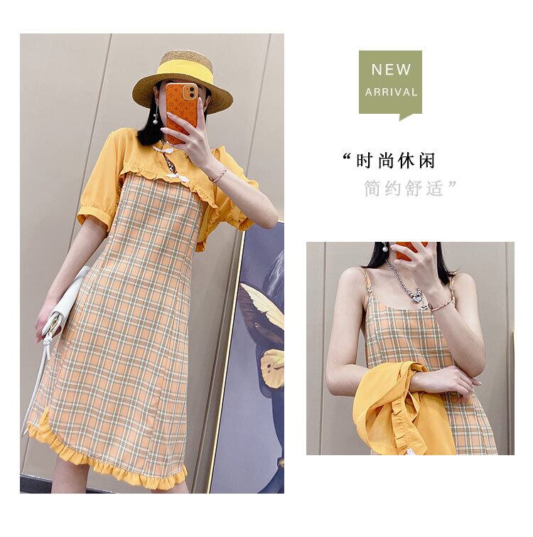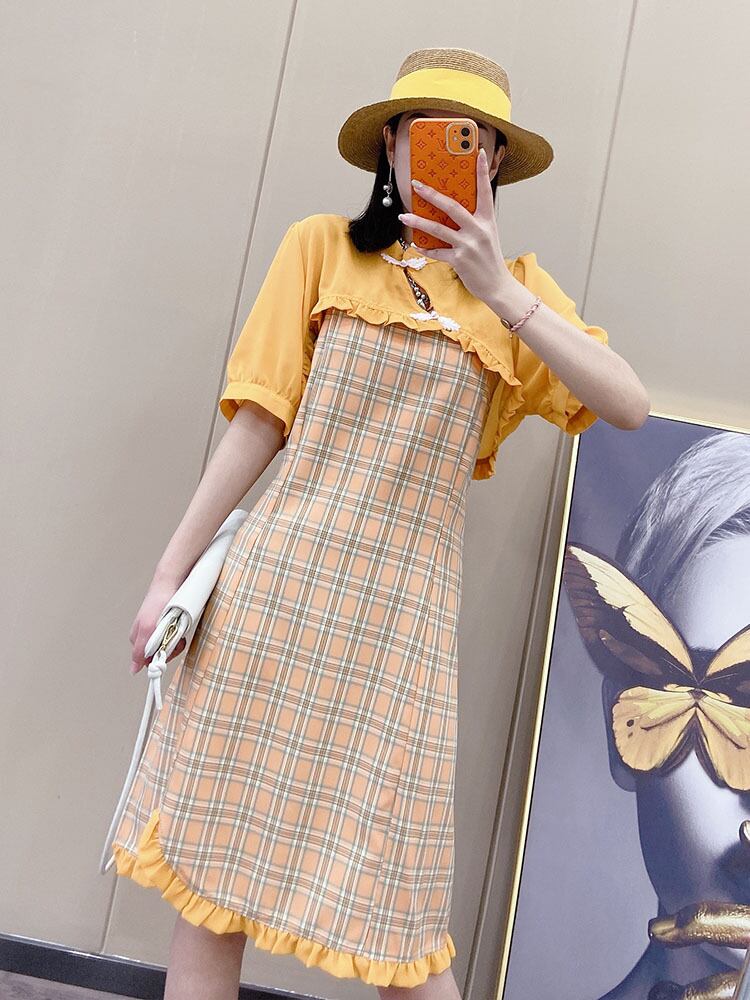 スプリングサマー格子柄ドレス カーディガンジャケット スカート 大きめサイズ 春物 夏物 ミックスインファッション40316674903