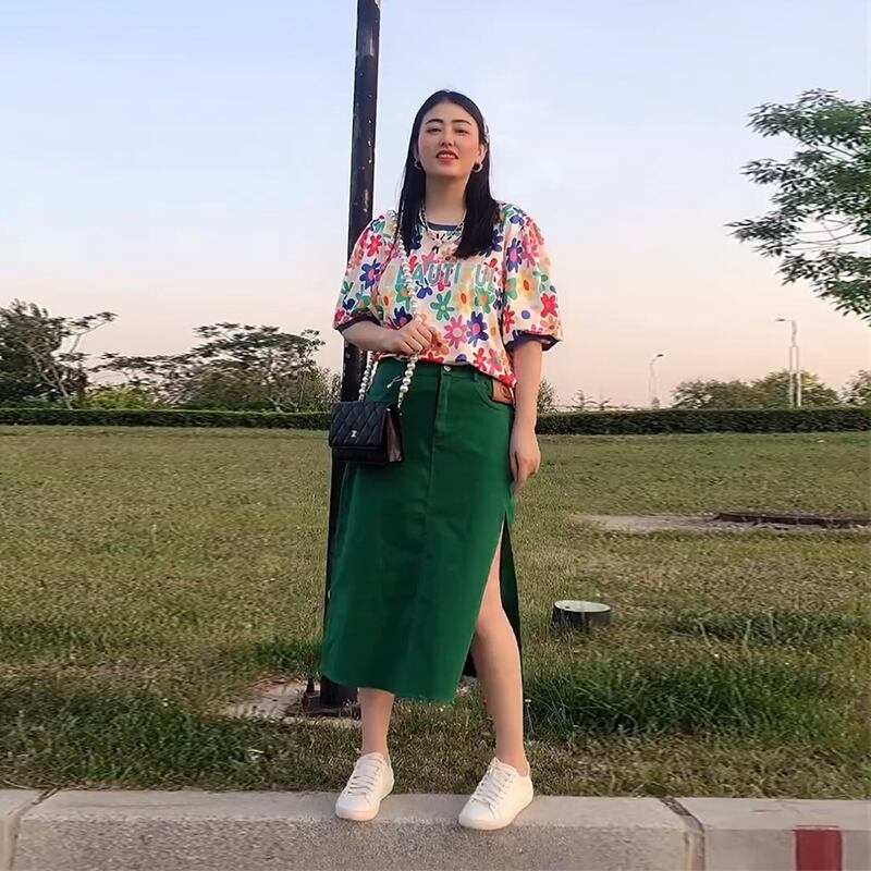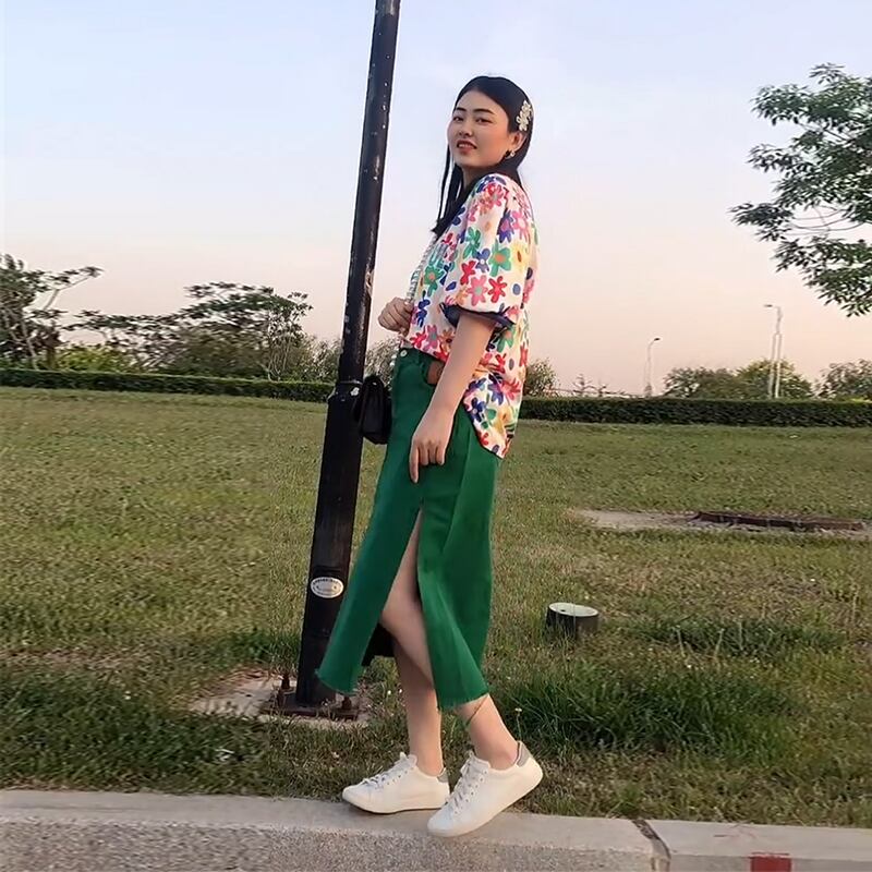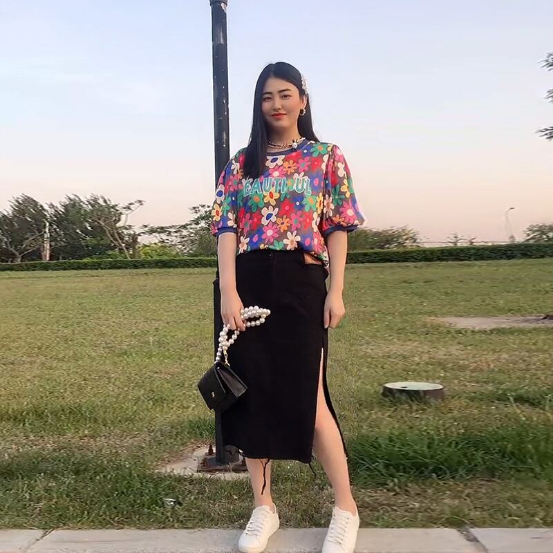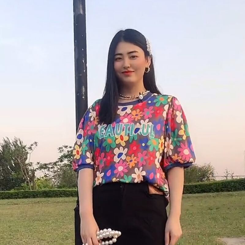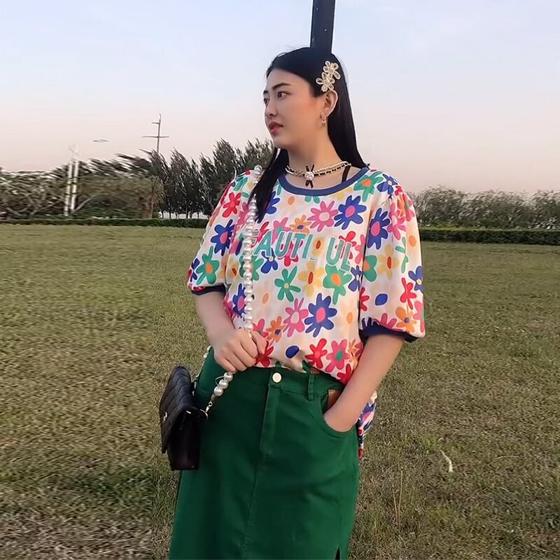 サマーFlowerデザイン Tシャツ シャツ ルーズスカート 大きめサイズ 夏物 フラワーデザイン ミックスインファッション6106147996
