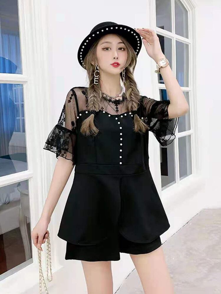 サマートップス レーススタイルショーツ 大きめサイズ 夏物 ブルマー ステッチ ミックスインファッション92510912767