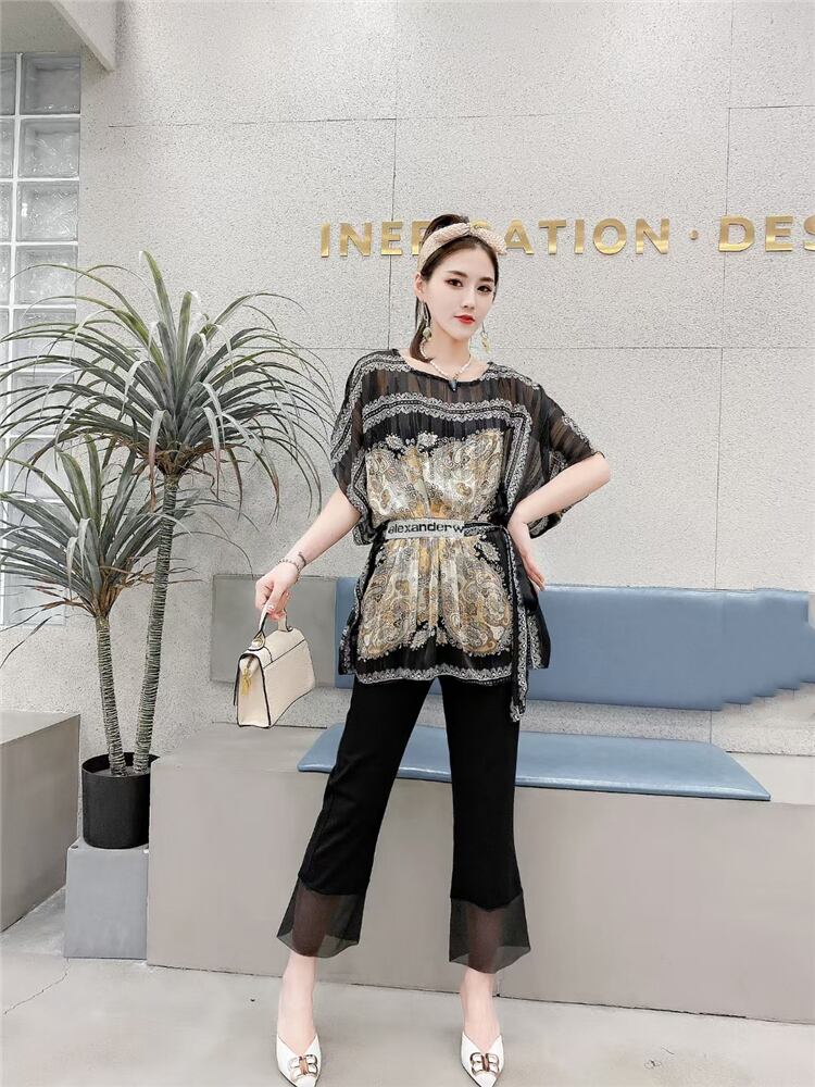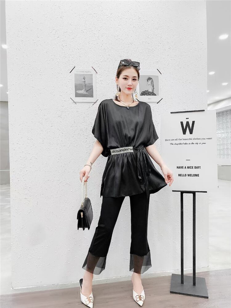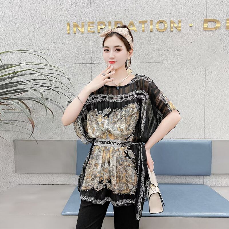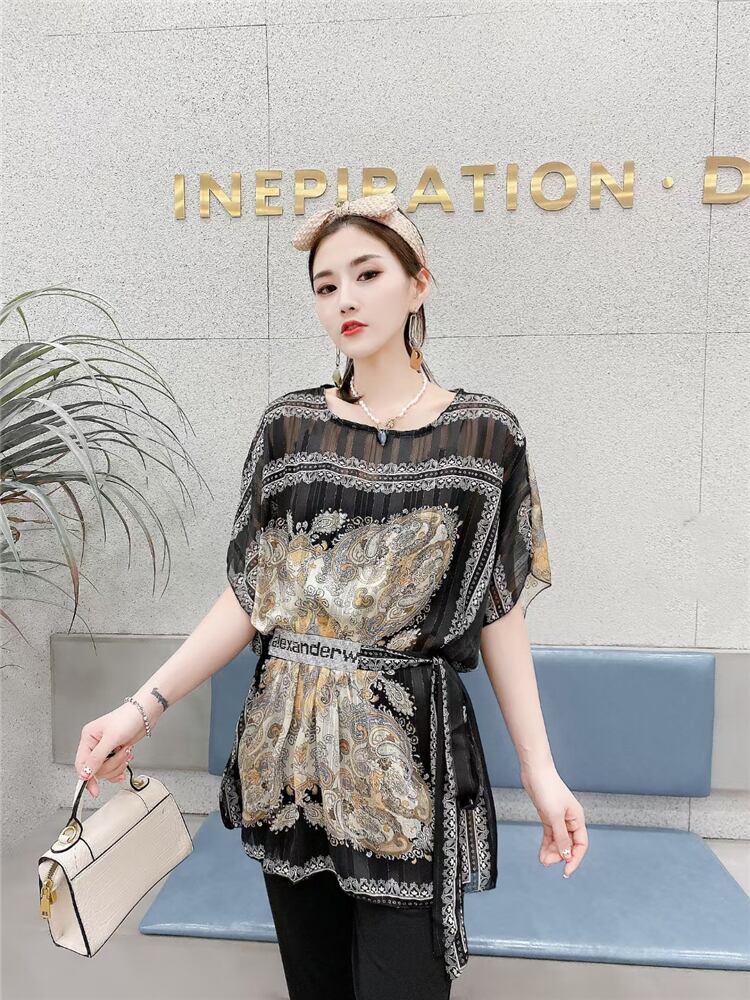 サマースタイルラウンドネックウェスト薄手Tシャツ トップス 大きめサイズ 夏物 Oネック ミックスインファッション22977978512